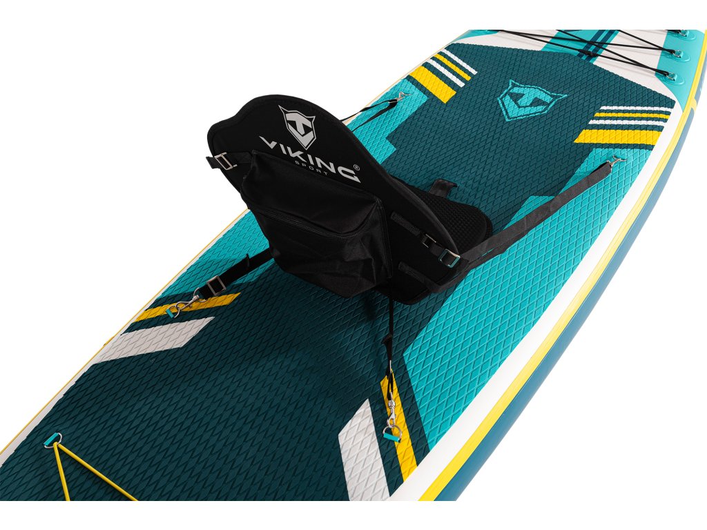 Paddleboard Viking Fjord Raider I potěší bohatým nadstandardním příslušenstvím, díky kterému můžete vyrazit na vodu hned po rozbalení. V balení najdete odolný batoh, dvojčinnou pumpu s manometrem, trojdílné pádlo, kotníkový řemínek a náhradní ploutev. Nechybí ani pohodlné sedadlo pro jízdu vsedě, stojánek na telefon a opravná sada. Vše je navrženo pro maximální komfort a samostatnost na cestách.