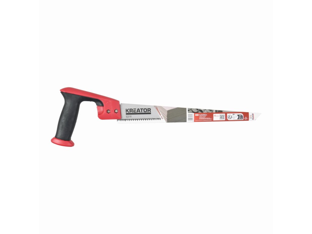 Tato pila na sádrokarton KRTH81002 z naší řady Kreator s ostrou špičkou snadno řeže sádrokarton a dřevovláknité desky. Kalené zuby 300mm dlouhé čepele jsou nabroušeny ve 3 různých úhlech pro zajištění vynikajícího řezu. Měkká protiskluzová rukojeť poskytuje pevný úchop.