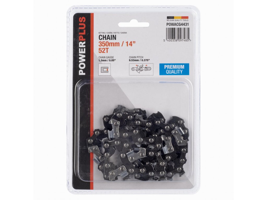 Pilový řetěz 14" (350mm) 52T - PREMIUM. Tento pilový řetěz POWACG4431 od PowerPlus prvotřídní kvality má vylepšenou geometrickou ostrost. Jeho otočné články eliminují tření a zaručují velmi čistý řez. Řetěz je kompatibilní s motorovou pilou Powerplus POWEG2010. Tímto vysoce kvalitním řetězem lze...