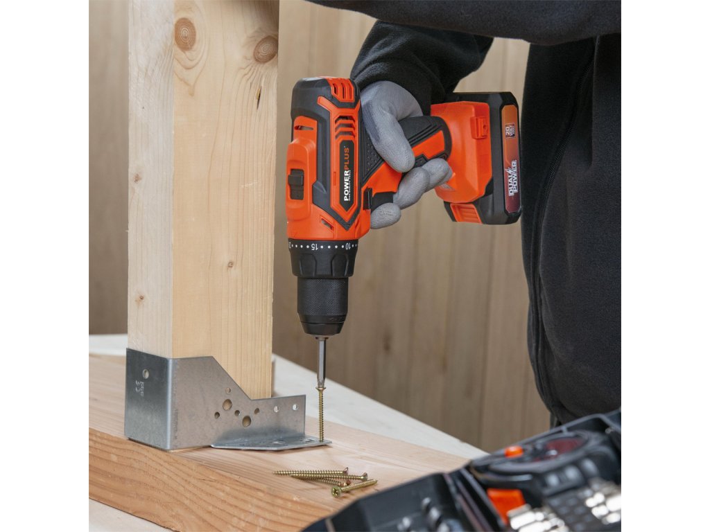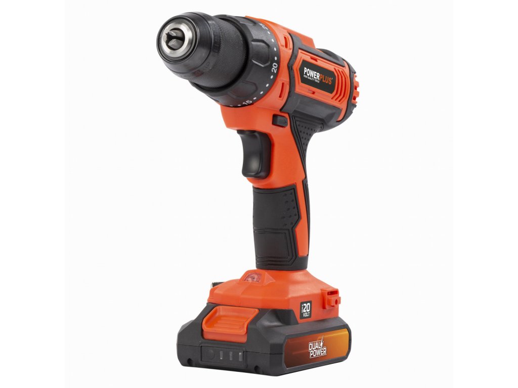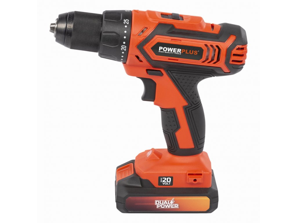 Tato akumulátorová 20V kombinovaná vrtačka/šroubovák POWDP15300 od PowerPlus je ideální pro všechny lehké projekty v domě a kolem něj, které vyžadují šroubování nebo vrtání. Stroj je dodáván v praktickém kufříku s nejméně 78 doplňky, baterií 20V o kapacitě 2.000 mAh a nabíječkou. Úložné pouzdro má volné sloty pro 1 nabíječku a 2 baterie. S jeho pomocí můžete bez námahy vrtat až 30 mm do dřeva a 13 mm do oceli. Vyberte si ze 2 různých nastavení rychlosti a 25 nastavení točivého momentu, abyste plně přizpůsobili nástroj vašemu projektu. Nejvyšší nastavení otáček (0 min-1 – 1550 min-1) je pro vrtání a nižší otáčky (0 min-1 – 400 min-1) pro šroubování. Díky rychloupínacímu sklíčidlu můžete rychle vyměnit vrtáky bez použití dalších nástrojů. Pokud se něco pokazí, rychlé zastavení okamžitě zablokuje sklíčidlo vrtačky, aby byla zajištěna vždy bezpečná práce. Nářadí je vybaveno kluznou spojkou. Pokud se vaše vrtačka zasekne v materiálu, který je příliš tvrdý, kluzná spojka zajistí, že se vrtačka přestane otáčet. Použít můžete baterie ze série DUAL POWER o napětí 20V a také i baterie o napětí 40V. Použití 40V baterie zajišťuje ještě delší dobu chodu stroje ve srovnání s 20V verzí.