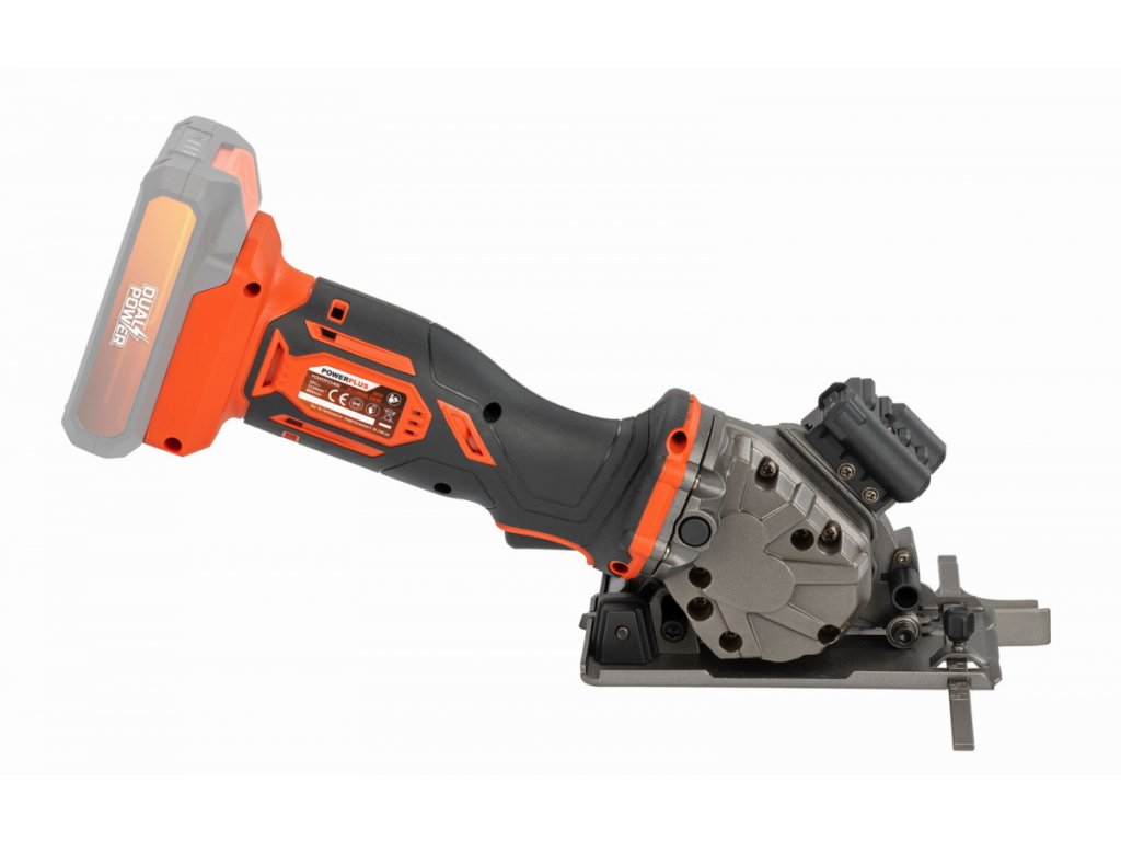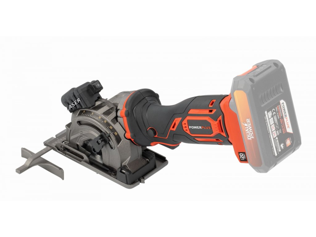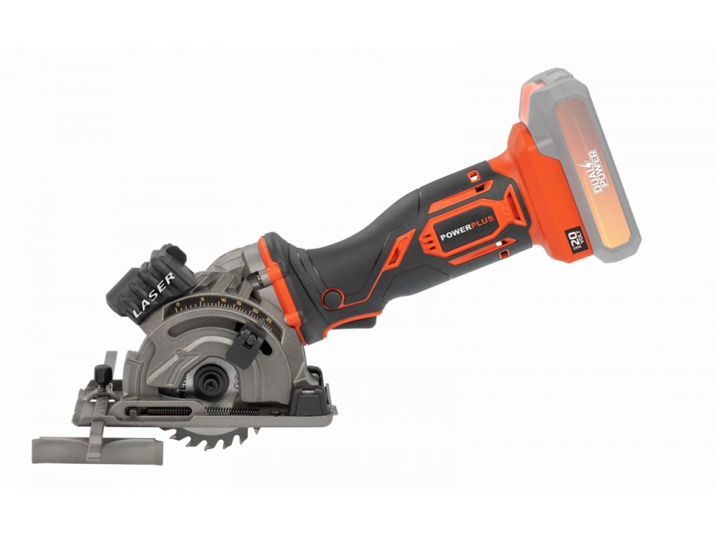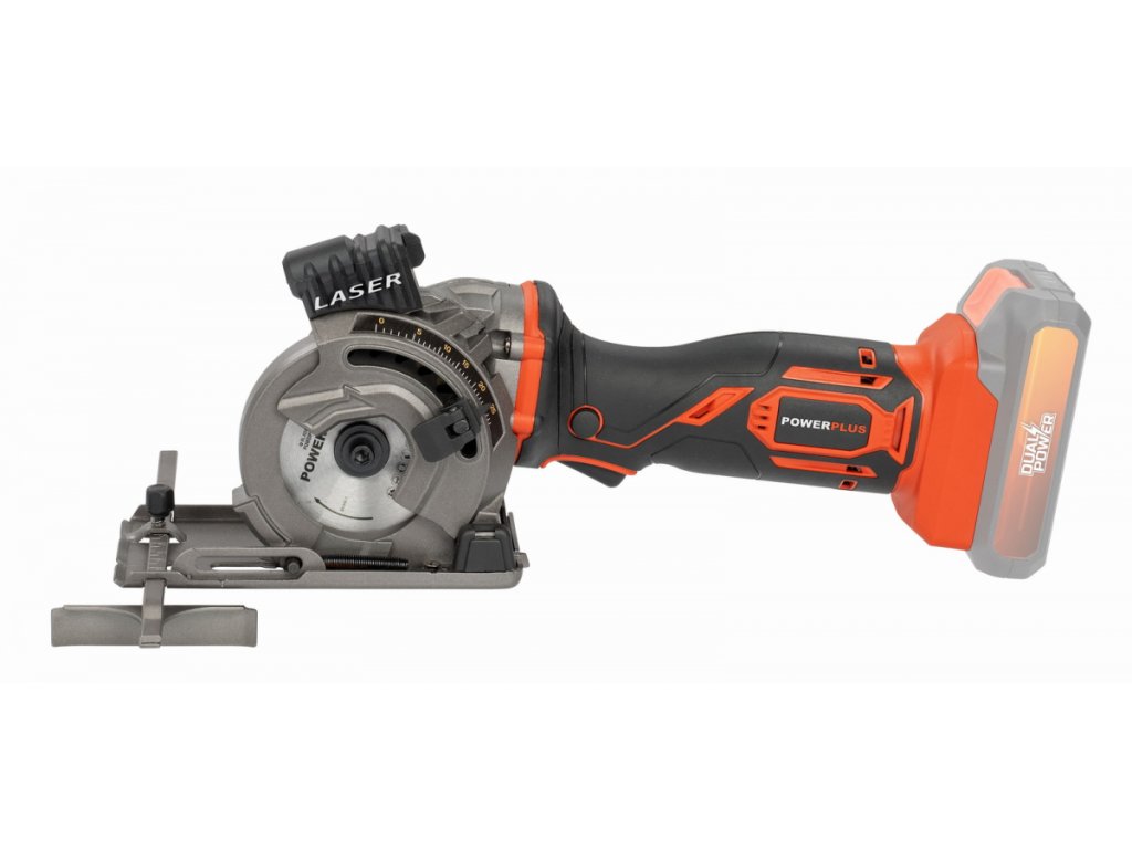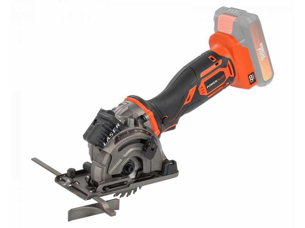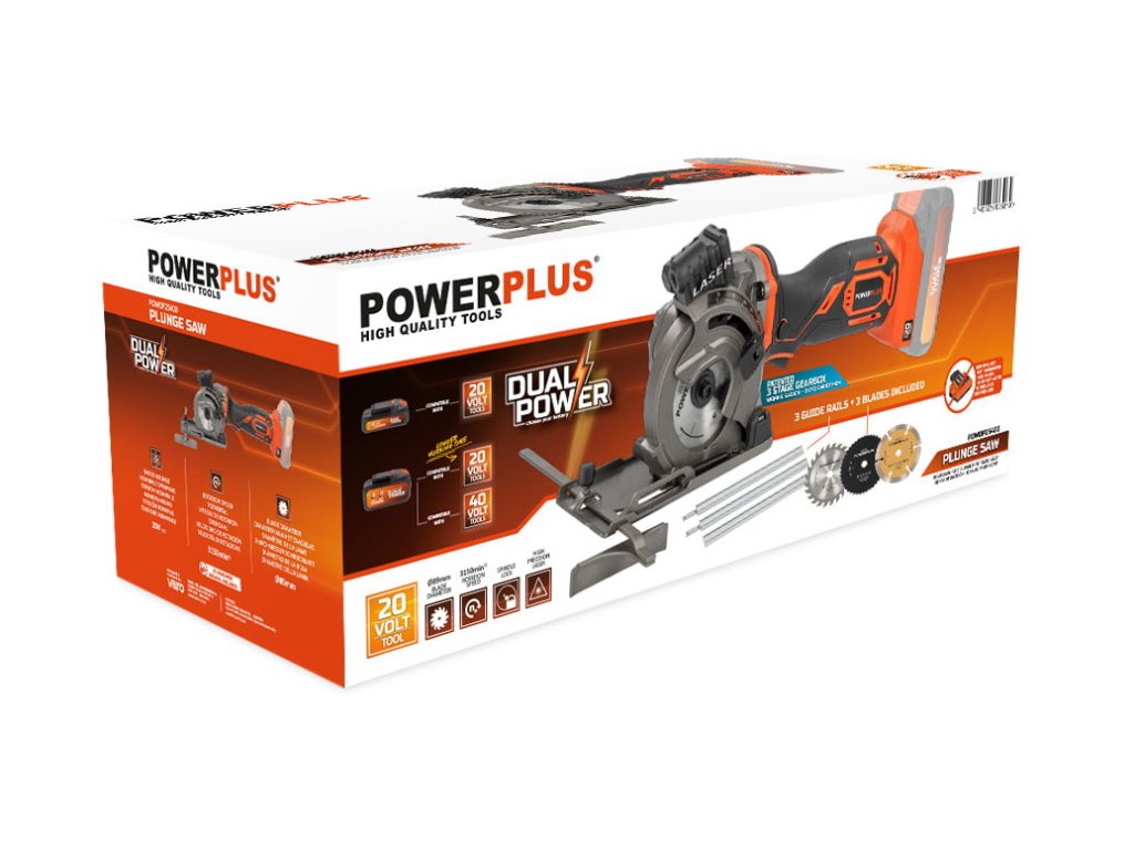 Tato 20V AKU mini ponorná pila POWDP25400 od PowerPlus je ideální pro řezání otvorů v OSB a dřevotřískových deskách. Pila je vybavena pilovým kotoučem prům.89 mm, který poskytuje maximální hloubku řezu 28 mm a proto je pila vhodná pro výrobu skříní, šaten a dalších. Kromě toho lze tuto akumulátorovou kotoučovou pilu použít také pro řezání desek a laminátů. V závislosti na použitém kotouči je tato pila vhodná také pro kamenné dlaždice a měkké plechy o maximální tloušťce 3 mm. Třídílná vodicí lišta, která je součástí balení zajišťuje dokonale rovné ponorné řezy. Může být zajištěna pomocí svorek, aby se zabránilo náhodnému posunutí. Součástí je také laser, který jasně ukazuje linii řezu. Patentovaný třídílný akcelerační modul přináší při práci znatelný rozdíl. To je důvod, proč nástroj pracuje plynuleji a při řezání je potřeba méně síly. Patka pily zajišťuje potřebnou bezpečnost. Po odložení pily se noha automaticky zvedne, aby se pilový kotouč nedotýkal povrchu. Navíc se pila nemůže náhodně spustit díky dvojitému bezpečnostnímu spínači. Použít můžete baterie ze série DUAL POWER o napětí 20V a také i baterie o napětí 40V. Použití 40V baterie zajišťuje ještě delší dobu chodu stroje ve srovnání s 20V verzí.TECHNICKÁ SPECIFIKACE: