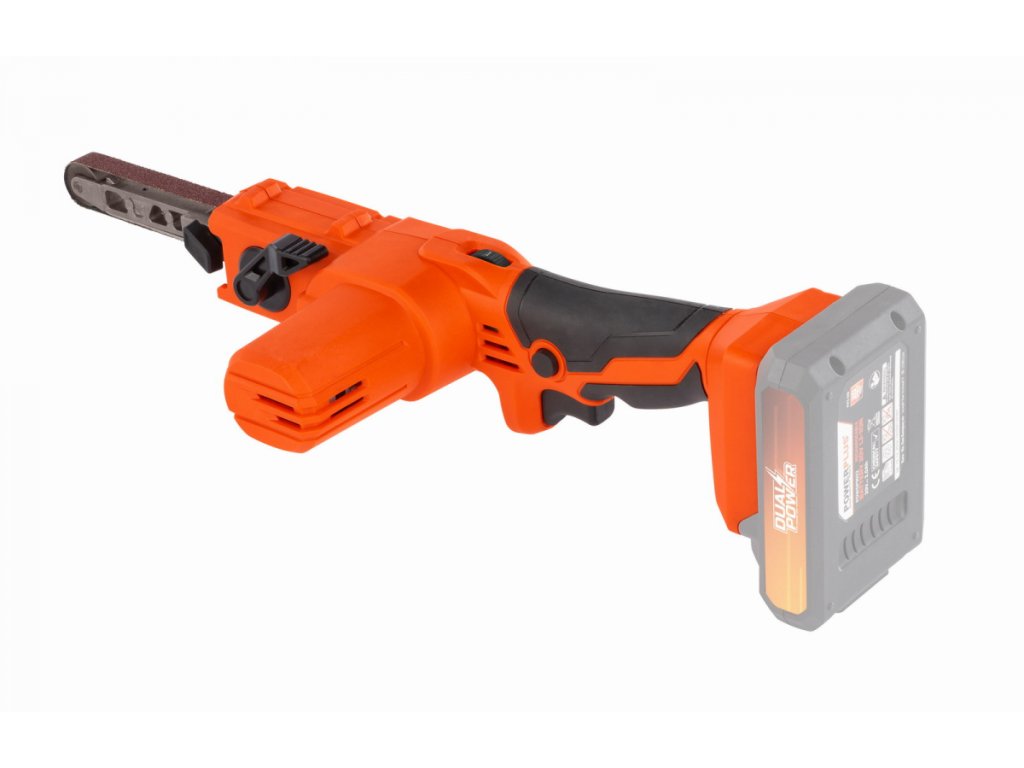 Tento AKU pásový pilník POWDP50700 od PowerPlus je ideální pro renovaci, restaurování, broušení a odstraňování otřepů ze dřeva, kovu nebo jakéhokoli syntetického materiálu. Úzké brusné pásy v kombinaci s pohyblivým brusným ramenem vám umožní dosáhnout i na nejhůře dostupná místa. Díky rozměrům je zařízení ideální například pro broušení zámků dveří. Vyberte správné nastavení rychlosti pro každý jednotlivý projekt. Rychlost otáčení je mezi 360 a 800 m/min a lze ji upravit pomocí tlačítka v horní části. Díky měkčenému úchopu můžete pohodlně pracovat, zatímco aretační tlačítko zajišťuje, že při práci nemusíte držet tlačítko napájení. Napnutí brusného pásu lze rychle nastavit a brusné pásy lze snadno vyměňovat. Stroj je dodáván s brusným pásem o zrnitosti 80 o rozměrech 457 x 13 mm. Stroj je dodáván bez baterie a nabíječky. Použít můžete baterie ze série DUAL POWER o napětí 20V a také i baterie o napětí 40V. Použití 40V baterie zajišťuje ještě delší dobu chodu stroje ve srovnání s 20V verzí.