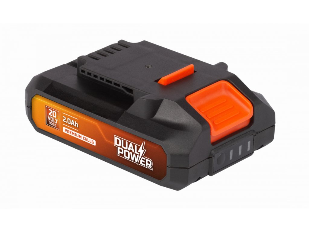 Tato 20V baterie POWDP9021 od PowerPlus je kompatibilní se všemi 20V stroji z řady DUAL POWER, a to jak ručním, tak i zahradním nářadím. Má kapacitu 2,0 Ah a je osazena prémiovými články. 3 LED indikátory vám umožní zkontrolovat zbývající energii baterie, abyste věděli, kdy je třeba ji nabít.TECHNICKÁ SPECIFIKACE: