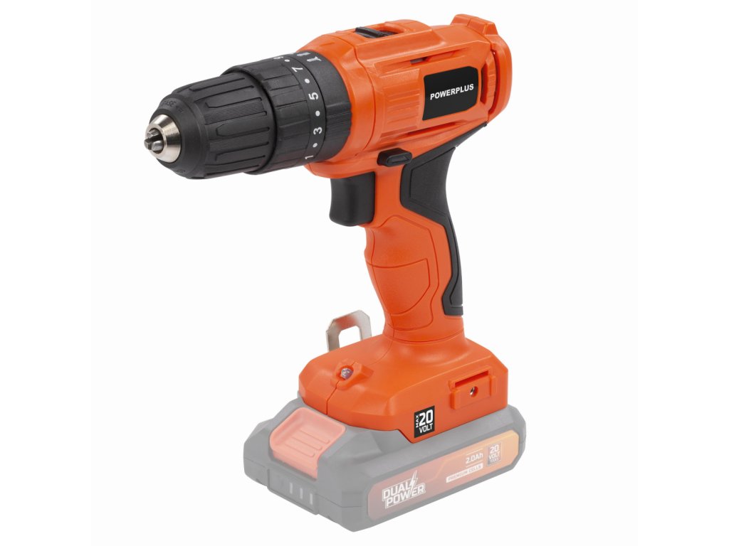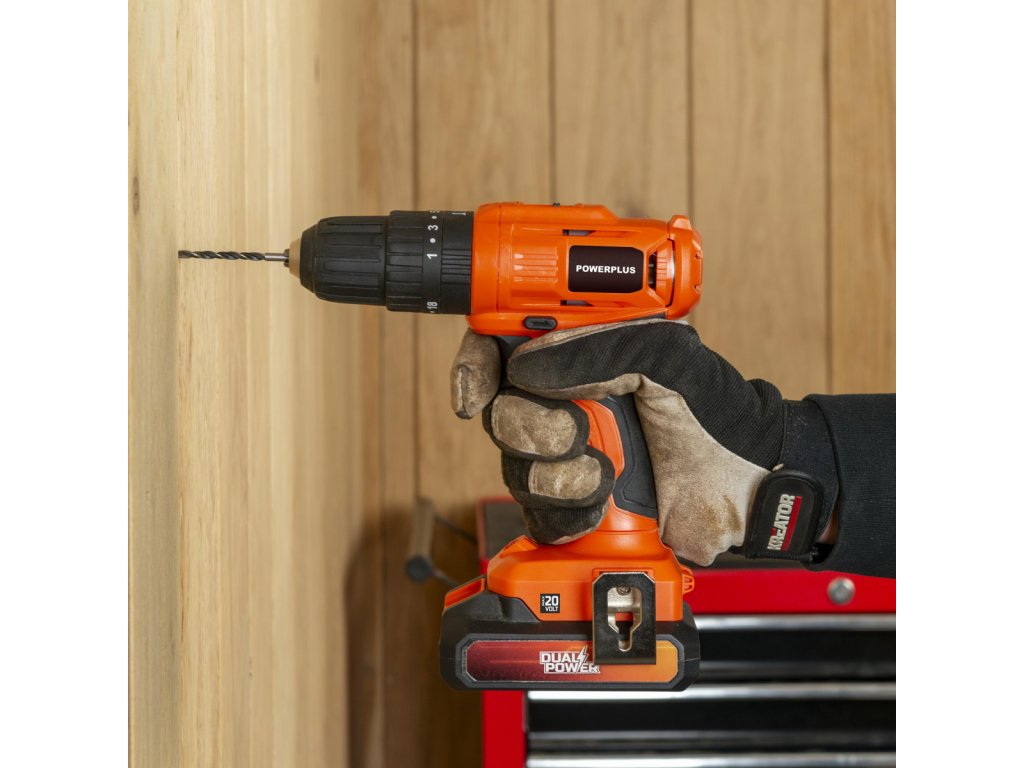 Tato AKU 20V příklepová vrtačka/šroubovák POWDPO1100 od Powerplus je ideální pro ty příležitostné domácí kutilské projekty, které vyžadují šrouby nebo (příklepové) vrtání. Tato příklepová vrtačka/šroubovák je kompaktní elektrické nářadí, které lze použít jak pro vrtání, tak pro šroubování. Bez námahy s ním vrtáte až 20 mm do dřeva, 10 mm do oceli a 6 mm do kamene. Vyberte si mezi 2 různými nastaveními rychlosti a 18 nastaveními točivého momentu, abyste plně přizpůsobili nástroj vašemu projektu. Nejvyšší nastavení otáček (0 min-1 – 1500 min-1) je pro vrtání a nižší otáčky (0 min-1 – 400 min-1) pro šroubování. Pokud se něco pokazí, rychlé zastavení okamžitě vypne nářadí, aby byl zajištěn bezpečný provoz za všech okolností. Ochrana proti přetížení zabraňuje přehřátí a přetížení elektromotoru. Automaticky vypne motor, když dojde k prudkému zvýšení teploty. Výměna vrtáků nebo šroubovacích bitů je rychlá díky rychloupínacímu sklíčidlu. Stroj je dodáván bez baterie a nabíječky. Použít můžete baterie ze série DUAL POWER o napětí 20V a také i baterie o napětí 40V. Použití 40V baterie zajišťuje ještě delší dobu chodu stroje ve srovnání s 20V verzí.