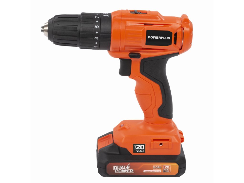 Tato AKU 20V příklepová vrtačka/šroubovák POWDPO1110 od Powerplus je ideální pro ty příležitostné domácí kutilské projekty, které vyžadují šrouby nebo (příklepové) vrtání. Tato příklepová vrtačka/šroubovák je kompaktní elektrické nářadí, které lze použít jak pro vrtání, tak pro šroubování. Bez námahy s ním vrtáte až 20 mm do dřeva, 10 mm do oceli a 6 mm do kamene. Vyberte si mezi 2 různými nastaveními rychlosti a 18 nastaveními točivého momentu, abyste plně přizpůsobili nástroj vašemu projektu. Nejvyšší nastavení otáček (0 min-1 – 1500 min-1) je pro vrtání a nižší otáčky (0 min-1 – 400 min-1) pro šroubování. Pokud se něco pokazí, rychlé zastavení okamžitě vypne nářadí, aby byl zajištěn bezpečný provoz za všech okolností. Ochrana proti přetížení zabraňuje přehřátí a přetížení elektromotoru. Automaticky vypne motor, když dojde k prudkému zvýšení teploty. Výměna vrtáků nebo šroubovacích bitů je rychlá díky rychloupínacímu sklíčidlu. Stroj je dodáván v kufru s 20V baterií 2.000 mAh a nabíječkou. Použít můžete baterie ze série DUAL POWER o napětí 20V a také i baterie o napětí 40V. Použití 40V baterie zajišťuje ještě delší dobu chodu stroje ve srovnání s 20V verzí.