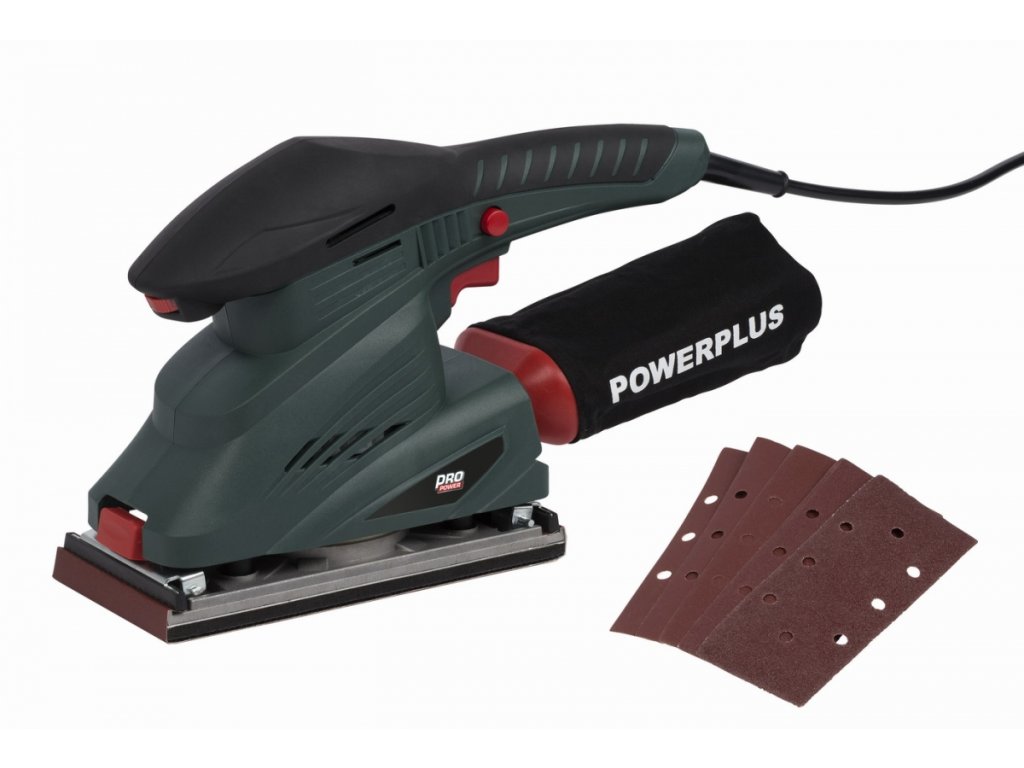 ŘADA PRO POWER JE NAVRŽENA TAK, ABY SPLNILA NÁROČNÉ POŽADAVKY PROFESIONÁLŮ. VYSOCE KVALITNÍ STROJE POSKYTUJÍ VYSOKÝ VÝKON A ZVLÁDNOU I TY NEJNÁROČNĚJŠÍ ÚKOLY. S PRO POWER SI MŮŽETE BÝT JISTI KVALITOU A SPOLEHLIVOSTÍ. Tato vibrační bruska má systém suchého zipu pro uchycení brusného papíru. To umožnuje použití všech druhů brusných papírů. Má silnou hliníkovou základnu a ergonomickou měkčenou rukojeť pro pohodlné používání. Aretační tlačítko pro stálý chod umožní nepřetržitou práci a zvyšuje komfort obsluhy. Prachový sáček shromažďuje veškerý prach během broušení a zajišťuje lepší viditelnost povrchu broušení a čistší pracovní prostředí.