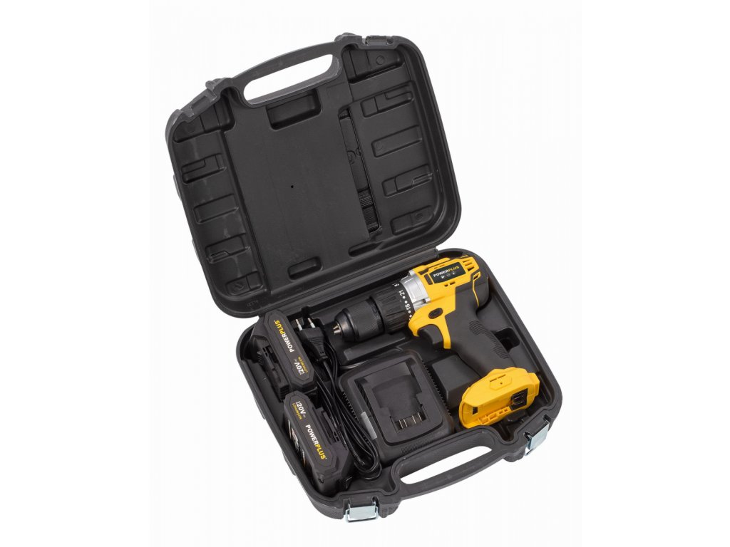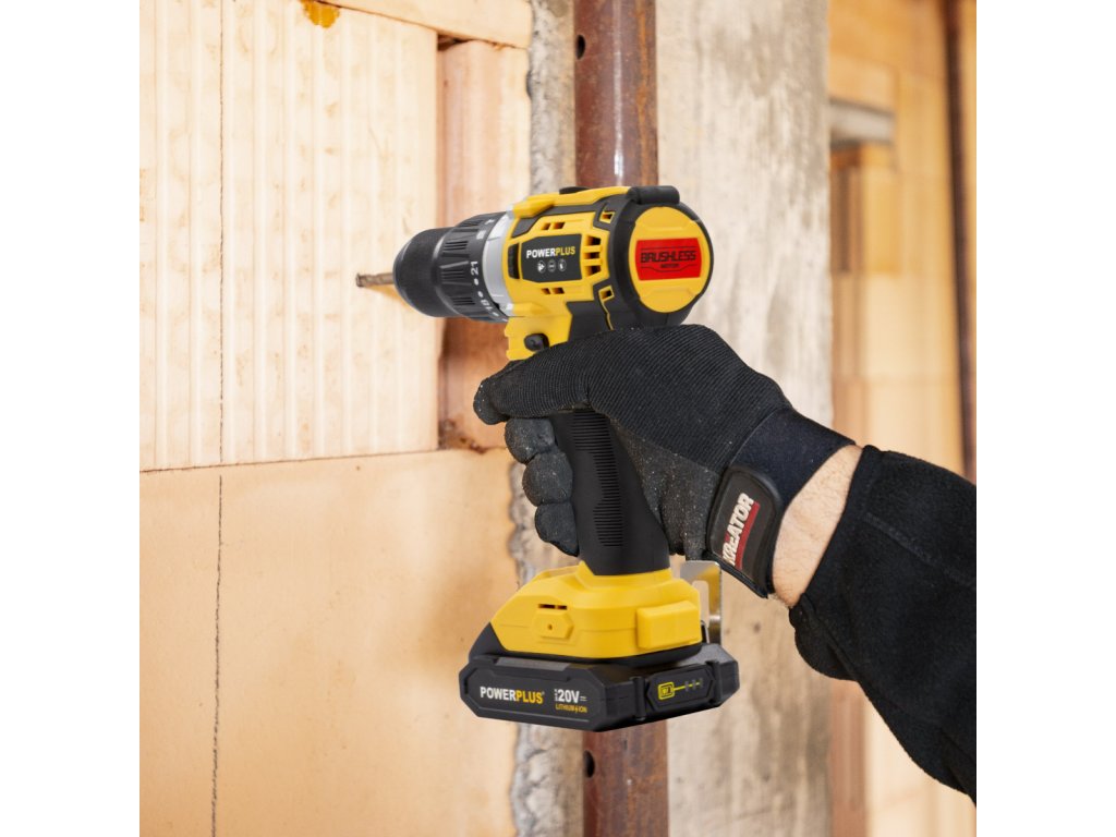 Tato 20V akumulátorová příklepová vrtačka a šroubovák POWX00512 od PowerPlus je ideálním a všestranným nástrojem. Lze jej použít pro utahování šroubů i vrtání do oceli (max. 13 mm), dřeva (max. 38 mm) a dokonce i kamene (max. 13 mm). Pouhým stisknutím tlačítka můžete změnit směr otáčení, takže můžete šrouby utahovat i povolovat. Díky bezuhlíkovému motoru je stroj ještě výkonnější a odolnější. Navíc snižuje vibrace a vrtačka vyžaduje méně údržby. Měkčená rukojeť poskytuje potřebný uživatelský komfort. Můžete rychle měnit bity pomocí 13 mm automatického sklíčidla s automatickým uzamykáním. Snadno přizpůsobte svůj stroj jakémukoli projektu díky 23 polohám točivého momentu. Pracovní LED světlo zajišťuje dobře odvedenou práci i na špatně osvětlených místech. Tato vrtačka/šroubovák je navíc dodávána se 2 bateriemi a nabíječkou v praktickém kufru.