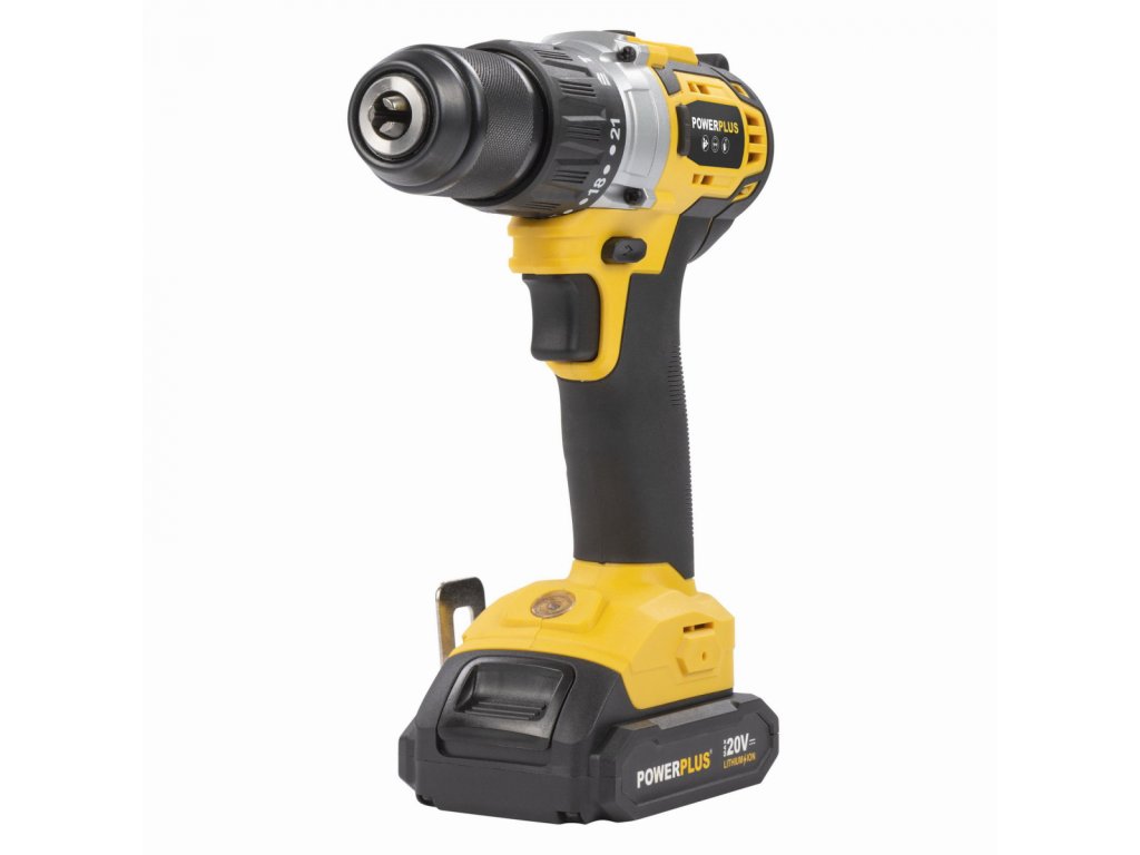 Tato 20V akumulátorová bezuhlíková příklepová vrtačka POWX00850 od Powerplus je všestranný pomocník pro většinu šroubovacích a vrtacích prací v domě a kolem něj. Směr otáčení lze změnit stisknutím tlačítka. Vrtačka/šroubovák má dva převody s maximální rychlostí otáčení 600 až 2.000 otáček za minutu což umožňuje stroji dosáhnout maximální kapacity vrtání prům.38 mm do dřeva a prům.13 mm do oceli. Rychloupínací kovové sklíčidlo 13 mm zajišťuje nezbytnou jednoduchost použití. Motor poskytuje maximální utahovací moment 60 Nm. Díky 23 nastavením krouticího momentu lze stroj snadno přizpůsobit jakémukoli šroubování a vrtání. Pracovní světlo poskytuje dostatek světla pro dobrou práci i na špatně osvětlených místech. Vrtačka/šroubovák se dodává v praktickém úložném kufříku s celkem 78ks příslušenství. Součástí stroje jsou 2 baterie a rychlonabíječka. Každá baterie má kapacitu 2.000 mAh. Součástí je také rozsáhlá sada šroubovacích bitů a vrtáků, praktické ruční nástroje, jako je nůž a metr.