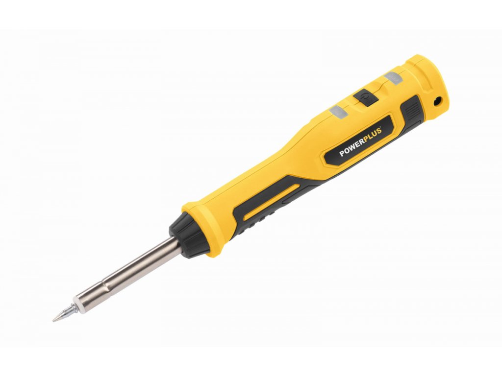 Tato akumulátorová hrotová pájka POWX1388 od Powerplus se ideálně hodí pro stavbu modelů a řadu menších pájecích úkolů. Protože nářadí napájené z baterie nepotřebuje napájecí kabel, je ideální pro použití na těžko přístupných místech a na místech, kde není napájecí zdroj. Akumulátorová pájka má krátkou dobu zahřívání a je připravena k použití za pouhých 60 sekund. Díky lehké konstrukci a pohodlnému měkčenému úchopu jde o snadno ovladatelný nástroj. Disponuje také LED indikátorem stavu a indikátorem stavu baterie. Odolná Li-ion baterie poskytuje potřebnou energii a má kapacitu 4400mAh, která postačuje k zajištění doby chodu asi 60 minut při plném nabití. Pájku lze dobíjet pomocí USB kabelu.TECHNICKÁ SPECIFIKACE: