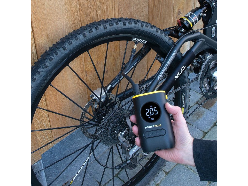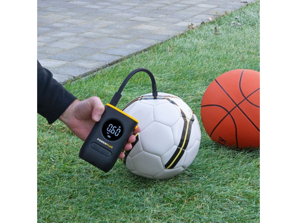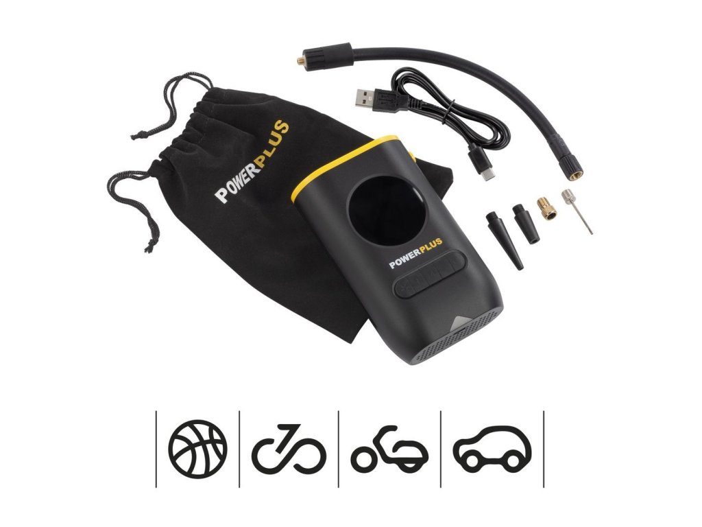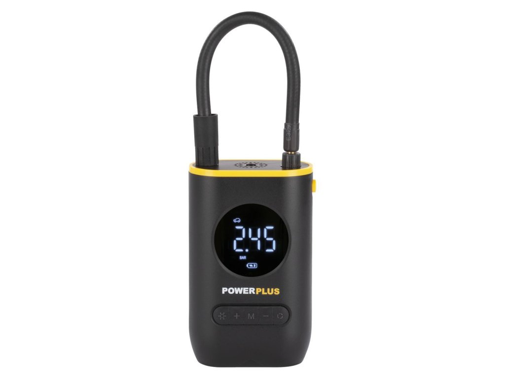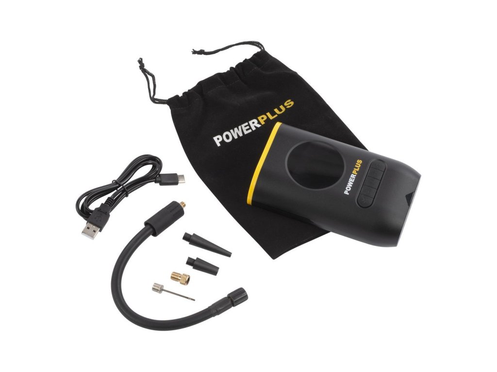 Aku kompresor 8V LI-ION. Tento 8V akumulátorový kompresor POWX1710 od PowerPlus produkuje 16 litrů vzduchu za minutu při maximálním tlaku 10,3 bar nebo 149 PSI. Se svými 3 tryskami a adaptérem pro automobilové pneumatiky je tato pumpa perfektní pro rychlé dofukování například míče, pneumatik na...