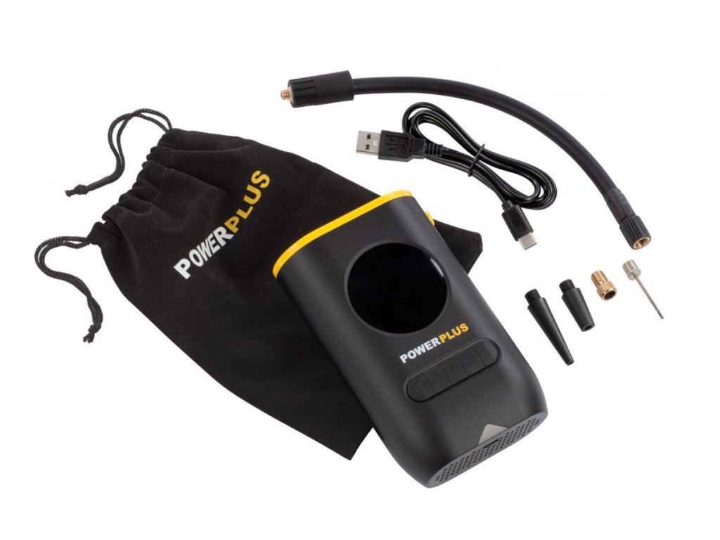 Tento 8V akumulátorový kompresor POWX1710 od PowerPlus produkuje 16 litrů vzduchu za minutu při maximálním tlaku 10,3 bar nebo 149 PSI. Se svými 3 tryskami a adaptérem pro automobilové pneumatiky je tato pumpa perfektní pro rychlé dofukování například míče, pneumatik na kole nebo auta či nafukovací matrace. Po použití jej jednoduše uložíte do praktického pouzdra. Kompresor se nejen snadno používá, ale je také kompaktní, lehký a bezdrátový. Můžete si jej tedy snadno vzít kamkoli, například v brašně na kolo. Hadice měří na délku 32,5 cm a má vnitřní průměr 7 mm, což poskytuje dokonalou rovnováhu mezi flexibilitou a minimální ztrátou tlaku. Díky LED světlu se můžete pustit do práce i ve špatně osvětlených prostorách. Zařízení ukazuje zbývající energii baterie, takže víte, kdy pumpu dobít pomocí přiloženého nabíjecího kabelu. Plně nabitá baterie o kapacitě 2.000 mAh poskytuje 20 až 25 minut pracovní doby.TECHNICKÁ SPECIFIKACE: