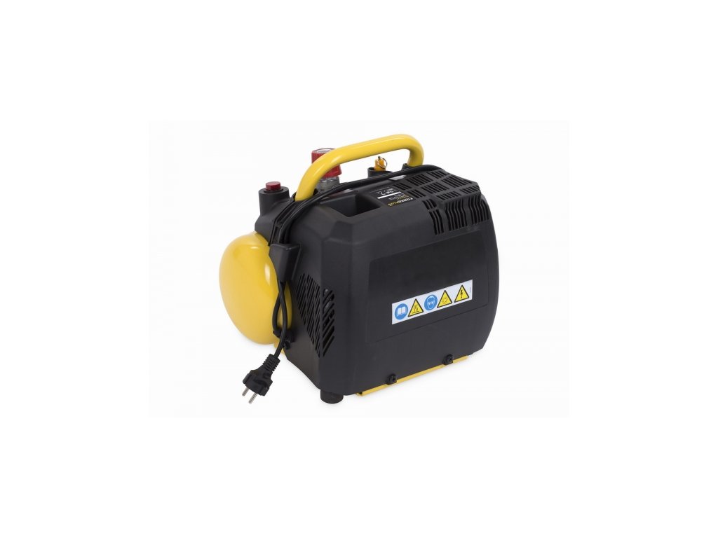 Kompresor 1100W 6L 8bar bezolejový. , Hladina hluku - 97 dB(A), Objem vzdušníku - 6 L, Průtok vzduchu (kapacita) - 180 l/min, Příkon - 1 100 (S3:25procent) W, Otáčky - 3 400 min-1, Jmenovitý tlak - 8 bar / 116 PSI, Hmotnost - 9,5 kg, Napětí - 230V / 50Hz...