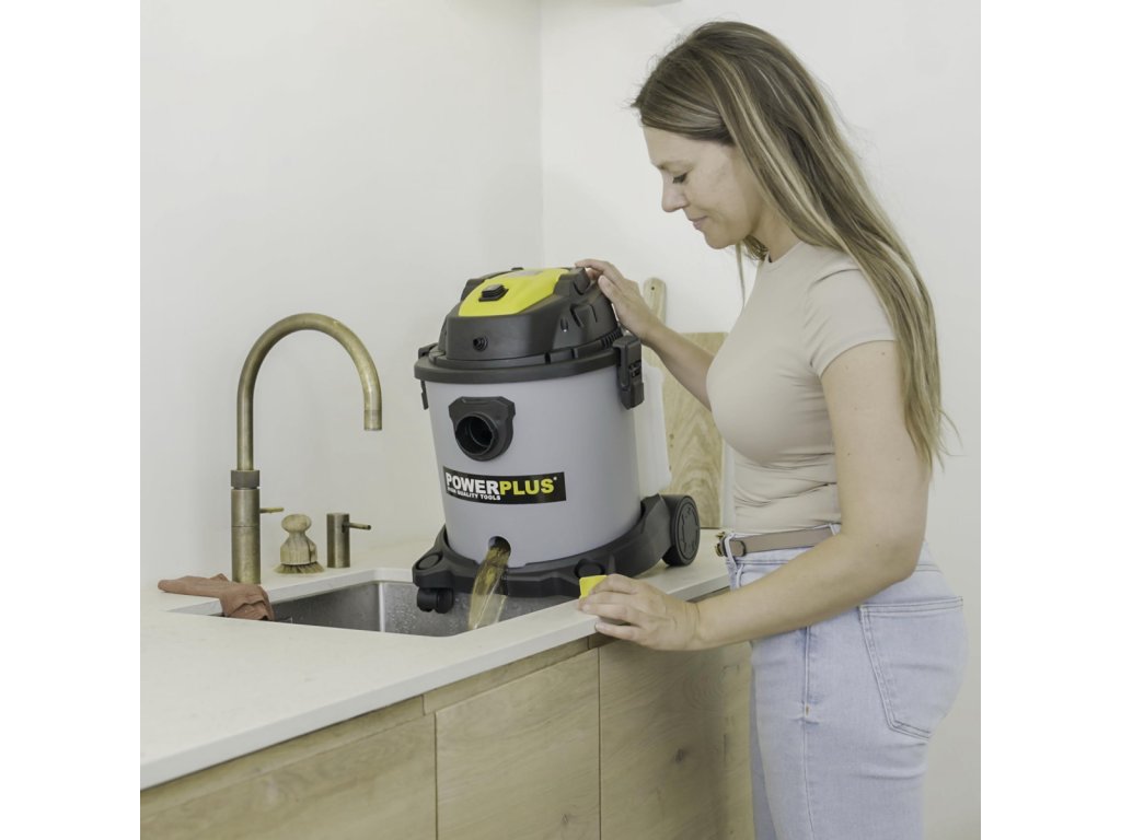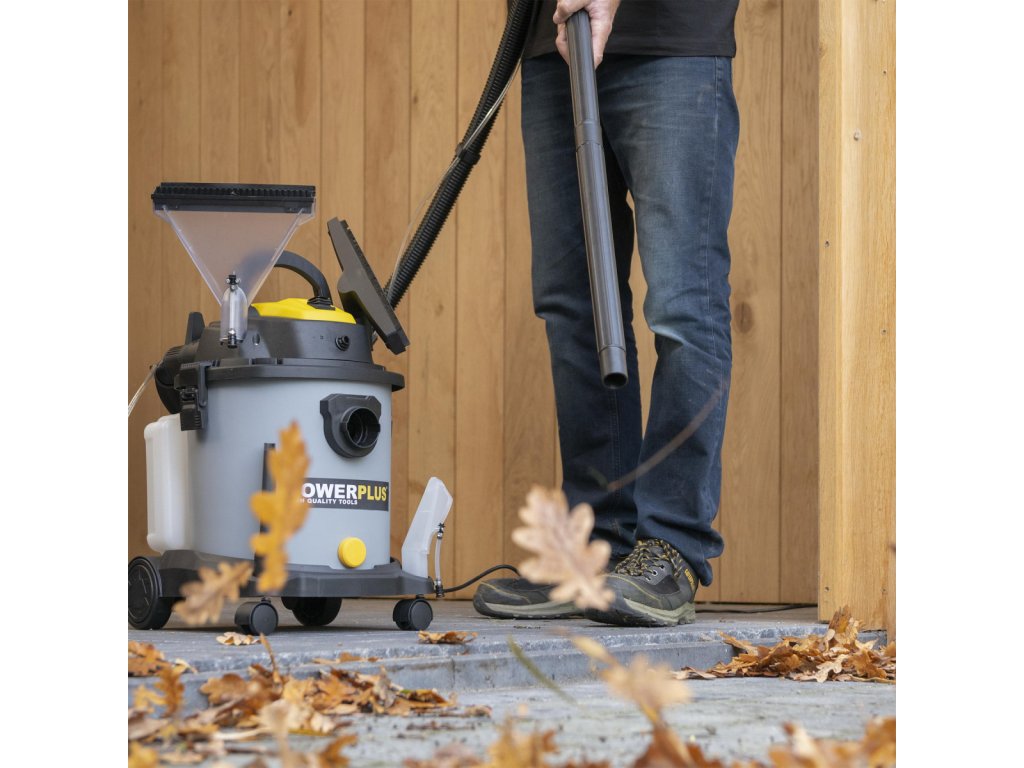 Tento 1 600 W elektrický vysavač POWX326 od Powerplus na čištění koberců používá k hloubkovému čištění textilií vodu a detergent. Špinavá voda se okamžitě znovu nasaje, takže si za chvíli budete moci užívat čistý, svěže vonící koberec. Spotřebič je vhodný i na čištění nábytku, takže vaše pohovka bude vypadat a vonět jako nová. Čisticí prostředek není součástí dodávky. Než začnete, zkontrolujte, který čisticí prostředek je vhodný pro povrch, který se chystáte vyčistit. Dodržujte pokyny dodané s čisticím prostředkem pro správný poměr čisticího prostředku a vody. Nikdy nepoužívejte čistič pouze s čisticím prostředkem. Všestranný vysavač koberců lze použít také jako běžný vysavač nebo dokonce jako lehký foukač listí. Mokré a suché vysávání: V kombinaci s dodaným papírovým sáčkem na prach slouží tento spotřebič jako běžný suchý vysavač. Bez prachového sáčku je to vysavač na mokro a čistič koberců, který používá saponát a vodu pro hloubkové čištění. Kromě vysávání prachu, nečistot a vody dokáže tento spotřebič také vyčistit lehké, uvolněné listí pomocí funkce foukání. To znamená, že tento kombinovaný vysavač/čistič koberců vám pomůže udržet čistou i vaši terasu. Vysavač je vybaven pokročilým filtrem, který blokuje i ty nejmenší částice. Ideální pro alergiky. Pokročilý filtr lze vyčistit pouhým stisknutím tlačítka. Chcete-li vyprázdnit nádržku se špinavou vodou, jednoduše vyjměte praktickou zátku na přední straně. Tento mokro-suchý vysavač nezabírá mnoho místa díky 2dílné trubici, která umožňuje kompaktní skladování.