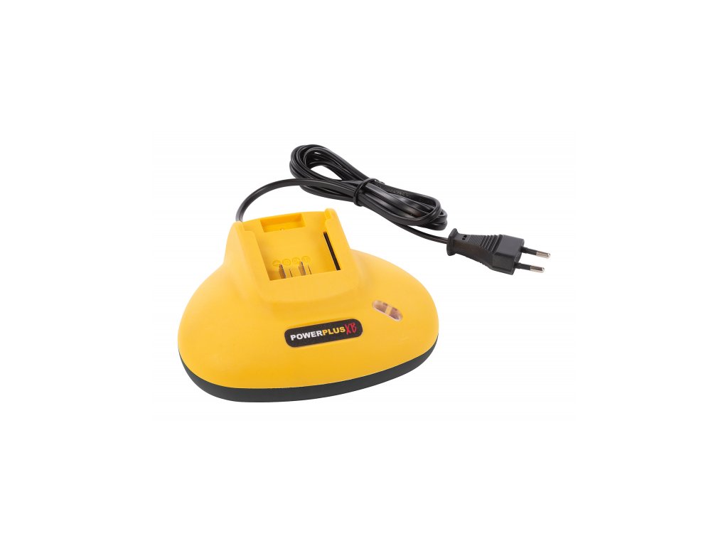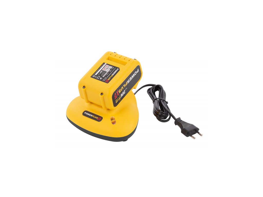Nabíječka 20V. Tato 20V nabíječka je kompatibilní se všemi bateriemi Powerplus XB. Baterie o kapacitě 2.000 mAh se nabíjí přibližně 60 minut a baterie o kapacitě 4.000 mAh se nabíjí přibližně 120 minut., Napětí - 220 - 240V / 50Hz, Jmenovitý výstup nabíječky - 20 V / 2A, Délka el. kabelu - 1,8...