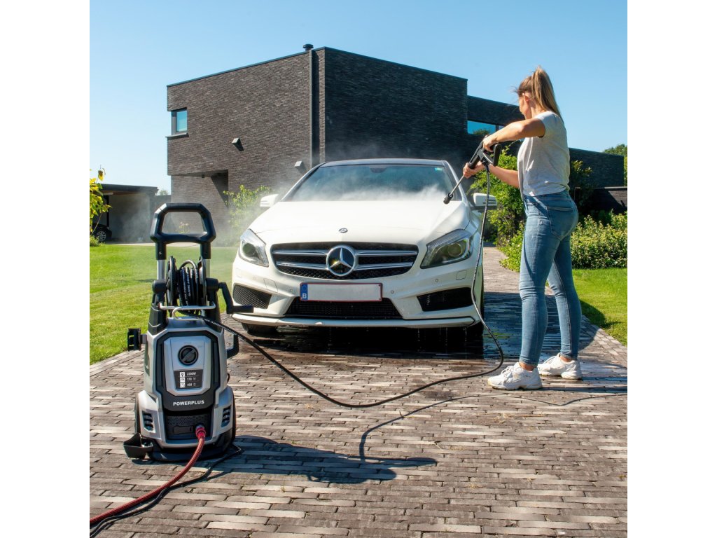 Proti této vysokotlaké myčce, vybavené výkonným 2200W motorem, nemá šanci ani ta nejodolnější špína. Tento vysokotlaký čistič POWXG90421 od Powerplus je skutečným všestranným pomocníkem s vestavěnou nádrží na čisticí prostředek o objemu 1,1 l. Při maximálním tlaku vody 170 bar je tato tlaková myčka ideální pro nejnáročnější čisticí práce, např. velkých ploch nebo odstraňování extrémně odolných nečistot. Tlaková myčka má maximální průtok 450 l/hod.. Tento vysokotlaký čistič je vybaven systémem start/stop, což znamená, že se nespustí, pokud není zapnutý a nestisknete spoušť. Čistič se zastaví, jakmile pustíte spoušť. Systém, který šetří vodu a elektřinu. Vysokotlaký čistič má vestavěný hadicový naviják pro snadné navíjení vysokotlaké hadice, která má délku 8m. To udržuje hadici bez zauzlování a umožňuje kompaktní skladování. Hadice navíc zůstává připojena k tlakové myčce. V kombinaci s vedením hadice to zjednodušuje navíjení a odvíjení navijáku hadice. Robustní kola unesou velkou část hmotnosti tlakové myčky. Zabraňuje namáhání vašich zad, umožňuje snadný pohyb a nezažijete mnoho nepříjemností ani po delší dobu.