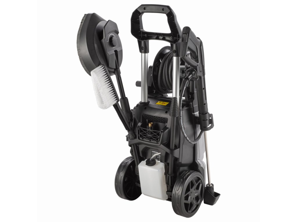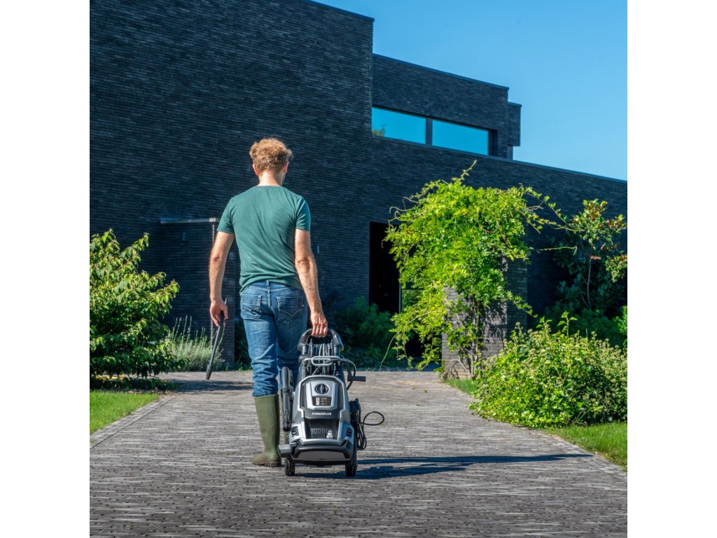 Proti této vysokotlaké myčce, vybavené výkonným 2500W motorem, nemá šanci ani ta nejodolnější špína. Tento vysokotlaký čistič POWXG90426 od Powerplus je skutečným všestranným pomocníkem. Má vestavěnou nádržku na čisticí prostředek o objemu 1,1 l. S maximálním tlakem vody 195 bar je tato tlaková myčka perfektní pro náročné čištění, např. vaše okapy nebo příjezdovou cestu. Tlaková myčka má maximální průtok 468 l/hod.. Díky indukčnímu motoru má stroj delší životnost, vyžaduje méně údržby a produkuje méně hluku než stroj s běžným motorem. Tento vysokotlaký čistič je vybaven systémem start/stop, což znamená, že se nespustí, pokud není zapnutý a nestisknete spoušť. Čistič se zastaví, jakmile pustíte spoušť. Systém, který šetří vodu a elektřinu. Vysokotlaký čistič má vestavěný hadicový naviják pro snadné navíjení vysokotlaké hadice, která má délku 8m. To udržuje hadici bez zauzlování a umožňuje kompaktní skladování. Hadice navíc zůstává připojena k tlakové myčce. V kombinaci s vedením hadice to zjednodušuje navíjení a odvíjení navijáku hadice. Rukojeť tohoto vysokotlakého čističe lze prodloužit od 720 do 910 mm. Robustní kola unesou velkou část hmotnosti tlakové myčky. Zabraňuje namáhání vašich zad, umožňuje snadný pohyb a nezažijete mnoho nepříjemností ani po delší dobu.