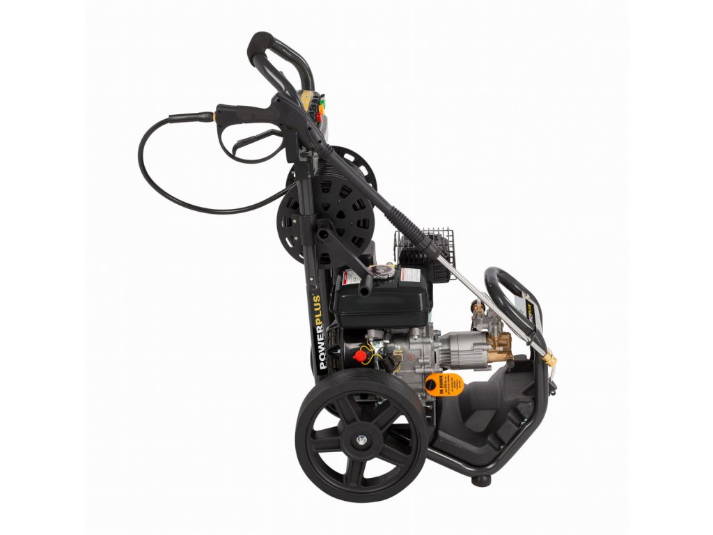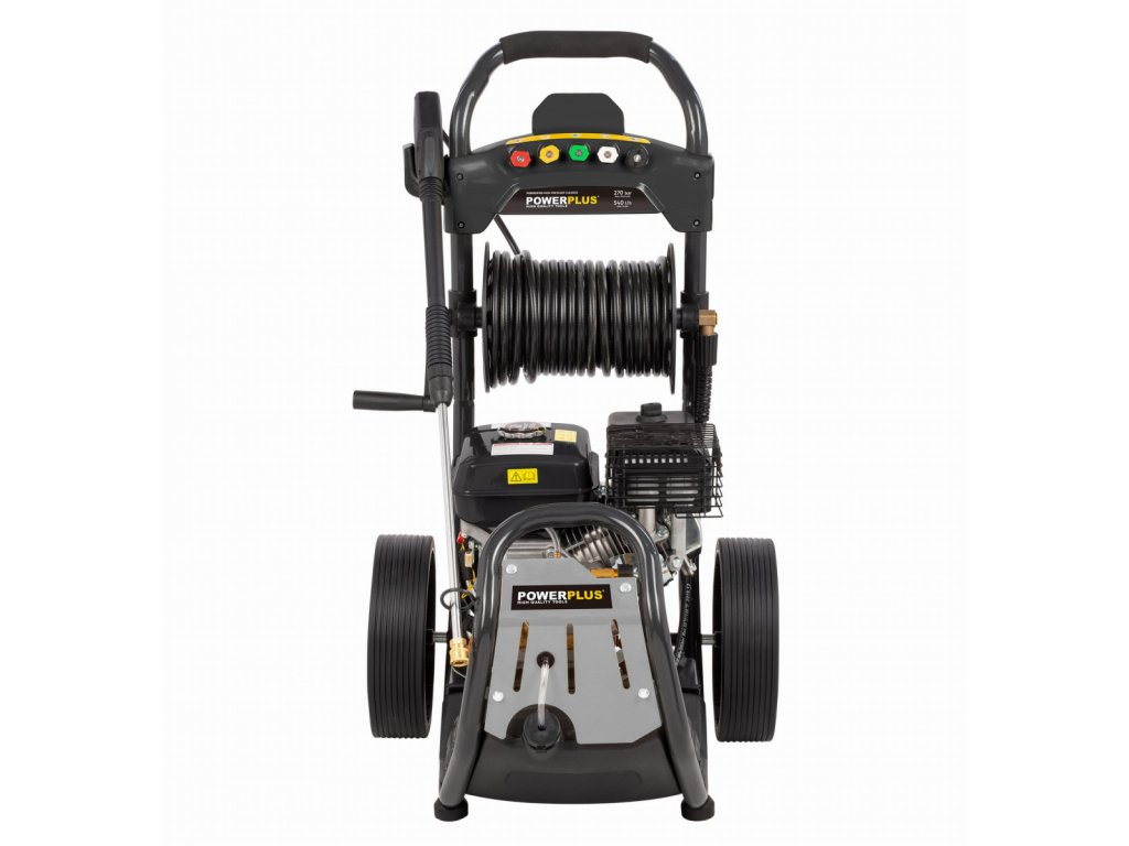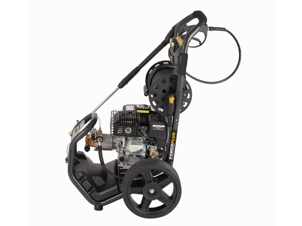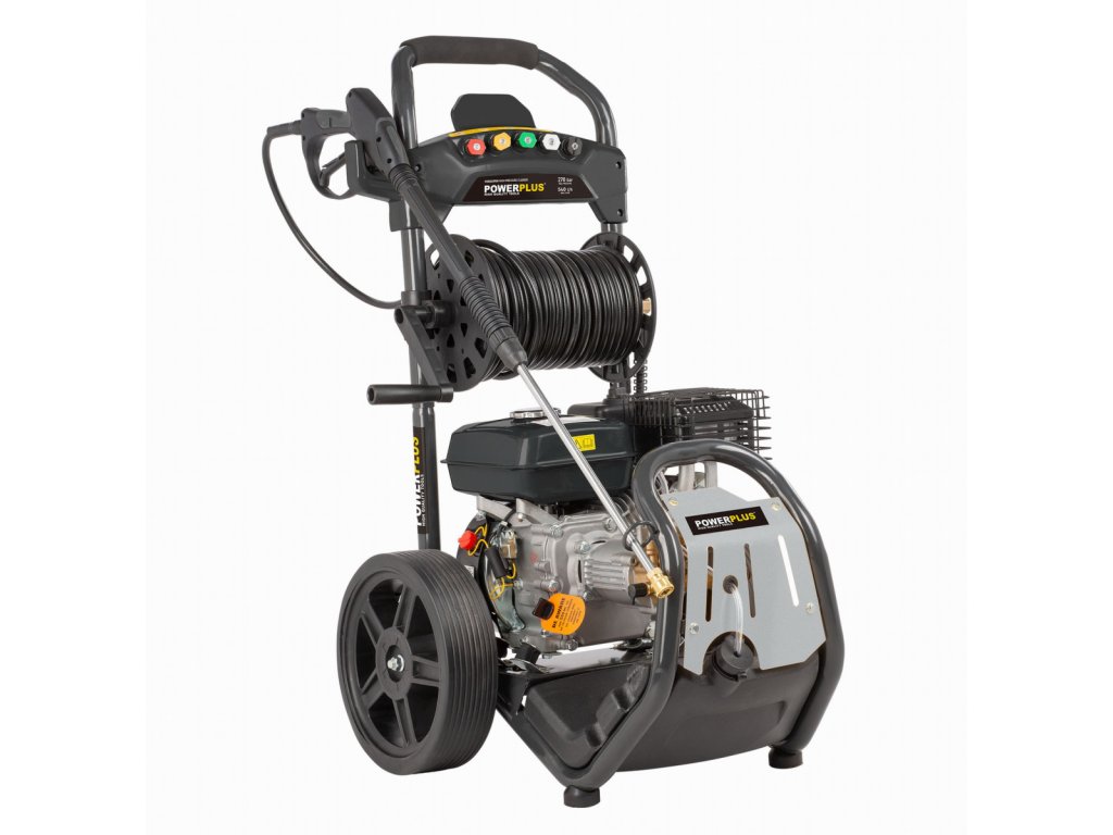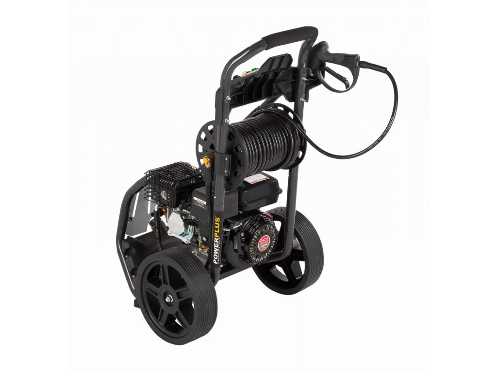 Díky výkonnému benzínovému motoru o objemu 210 ccm zvládne tlakový čistič POWXG9100 POWERPLUS i ty nejnáročnější práce. Čtyřtaktní motor poskytuje výkon až 5100 W. Průtok vody 540 litrů za hodinu a maximální tlak až 270 barů zajišťují vždy čistý výsledek. Je to ideální benzinová tlaková myčka pro nejnáročnější úkoly. Čištění teplou vodou je možné, protože tlakový čistič vydrží teploty až 60st C. Integrovaná nádrž na čisticí prostředek zajišťuje nejčistší výsledky. POWXG9100 je vybaven vysoce kvalitním měděným čerpadlem, které zajišťuje lepší výkon a prodlužuje životnost tlakové myčky. Zařízení lze připojit k běžnému vodovodnímu řádu, ale je také vybaveno režimem sání. Při použití tohoto režimu lze 2 metry dlouhou hadici použít k čerpání vody z kbelíků, rybníků a studní. Díky obtokovému systému je tlakový čistič bezpečným nástrojem pro čištění. Když se uvolní spoušť tlakové myčky, voda bude přiváděna samostatným obtokovým okruhem. Tam se čerpá čerpadlem při konstantním tlaku 10 bar. Tím se zabrání prasknutí hlavy čerpadla tlakové myčky v důsledku přetlaku a motor se nevypne při každém uvolnění spouště. Vzhledem k 3litrové benzinové nádrži není třeba otravných prodlužovacích kabelů. 20 metrů dlouhá tlaková hadice poskytuje potřebnou volnost pohybu. Kromě toho je tlaková myčka připevněna na robustním podvozku se dvěma koly, takže jej lze snadno přepravovat.