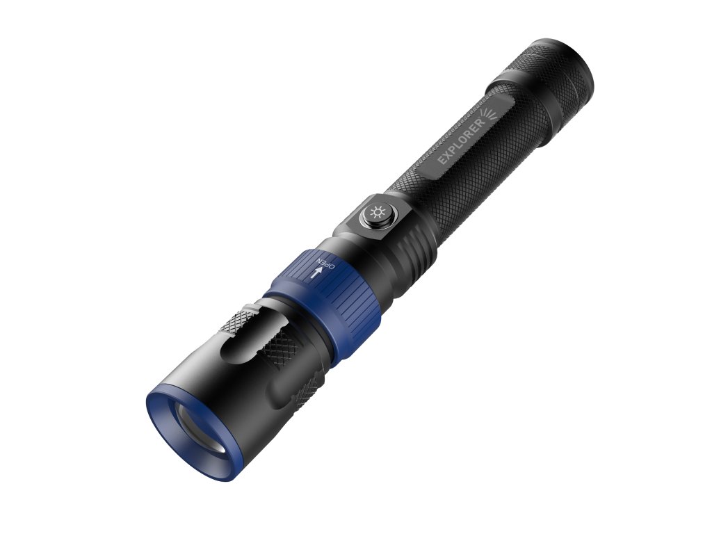 - Snadné ovládání a výměna hlavic: Stačí stlačit vypínač ON/OFF a jednoduchými stisknutími přepínat mezi světelnými režimy. Pro výměnu hlavic jen potáhněte pojistku dolů a vyberte požadovanou hlavici.