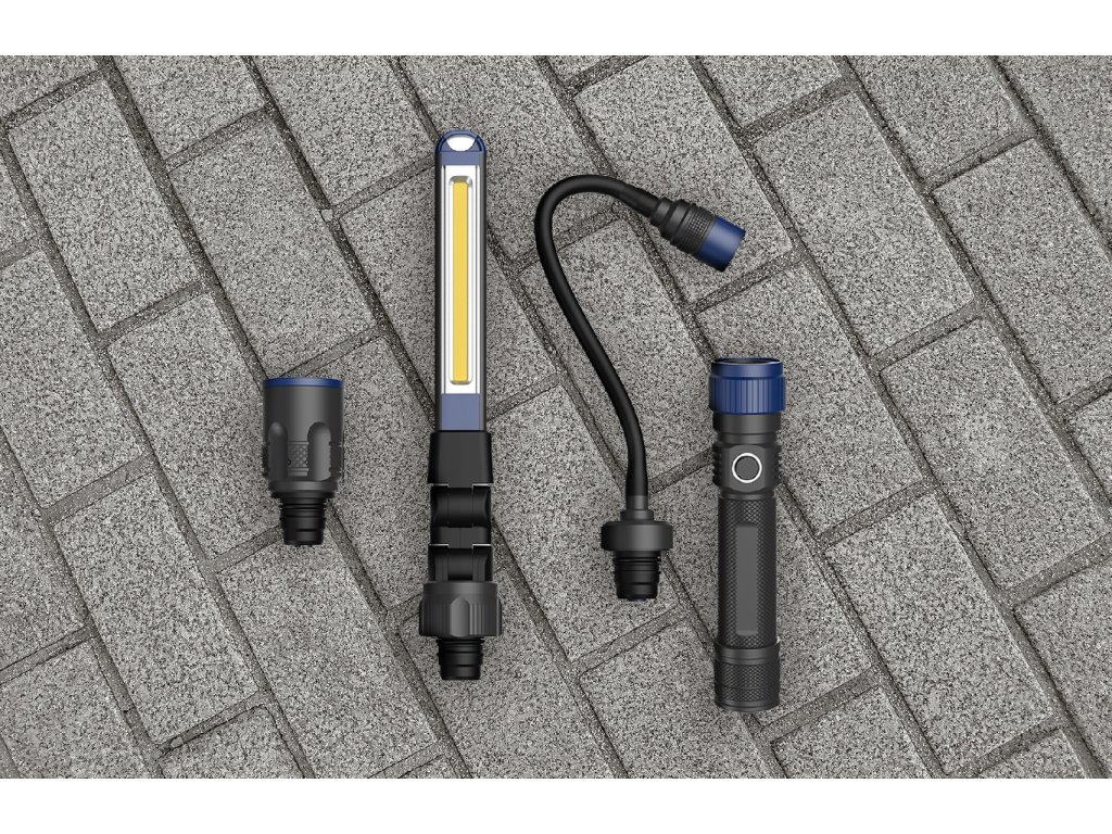 Toto pracovní světlo nabízí svítivost 380 lm, tři vyměnitelné hlavice (standardní, ohebná, LED pásek) a skvělou odolnost díky ochraně IPX4 a IK07, což z něj činí nepostradatelného pomocníka pro každou situaci.