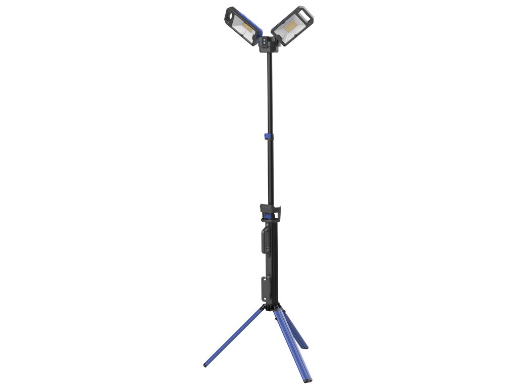 Svítivost 500-5000 lm (vysoká) • barva světla studená/teplá, Ra 80 • zdroj světla SMD • kapacita baterie 7,3V / 4000mAh • doba nabíjení 4 hodiny • provozní čas až 5 hodin (nízký režim) • odolnost IPX4 / IK07 • dvojité otočné světlo • kovové kolíky pro stabilitu • hmotnost 4422 g • 3 režimy svícení • rozložitelné a skládací provedení