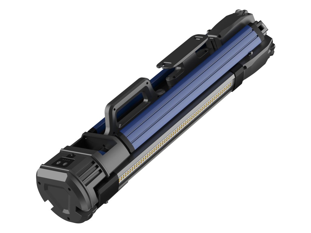 Svítivost 1500 lm - 5000 lm - 10000 lm (nízká - střední - vysoká) • barva světla studená - teplá, Ra 80 • zdroj světla SMD • kapacita baterie 14,6V / 4000mAh • doba nabíjení 4 hodiny (přes adaptér) • provozní čas 5 hodin (nízký režim) - 2,5 hodiny (střední) - 1 hodina (vysoký režim) • odolnost IPX4 / IK07 • 3 režimy svícení • hmotnost 5500 g • rozměry 220 x 15 x 15 cm (rozložené), 64,7 x 15 x 15 cm (složené) • 4 LED indikátory baterie