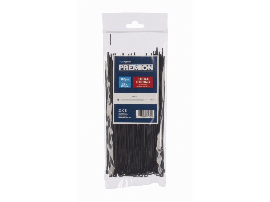 Stahovací pásky černé 3,6 x 200mm 100ks PREMION PREP00017
