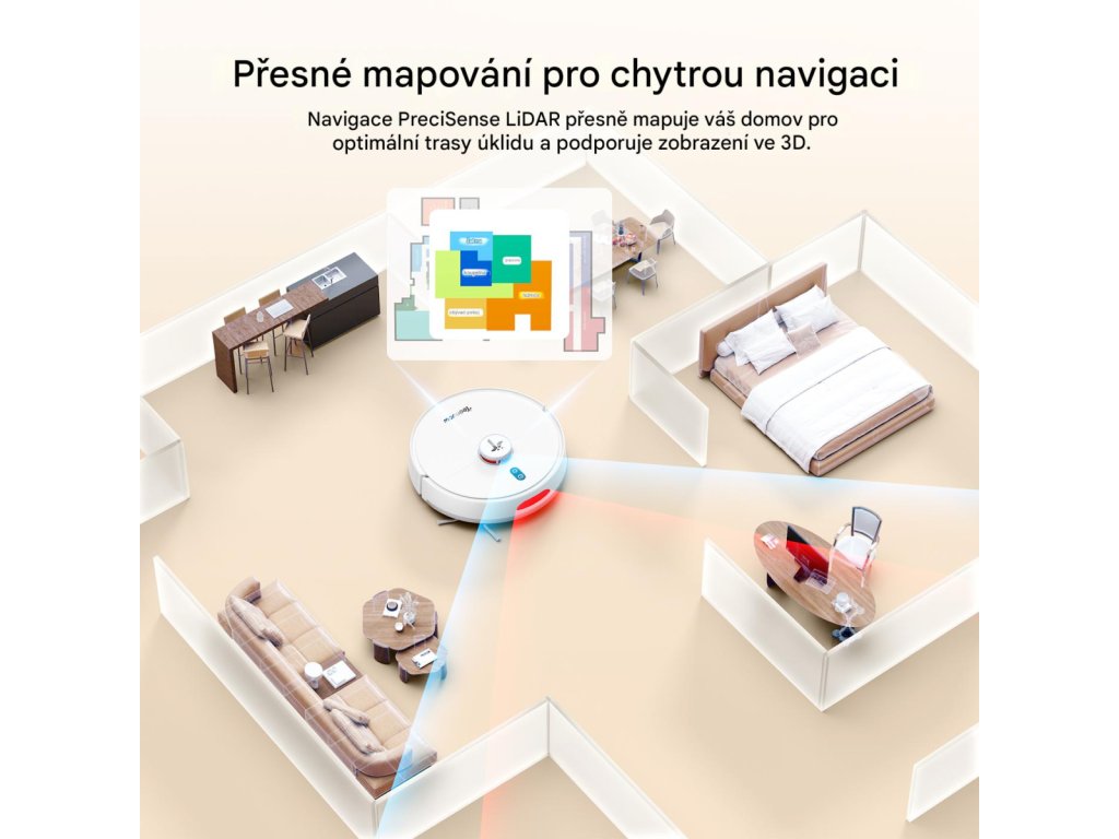 Vytváří přesnou mapu místnosti v reálném čase, inteligentně se vyhýbá nábytku a překážkám a zvyšuje efektivitu úklidu. - Výkonná baterie 5000 mAh