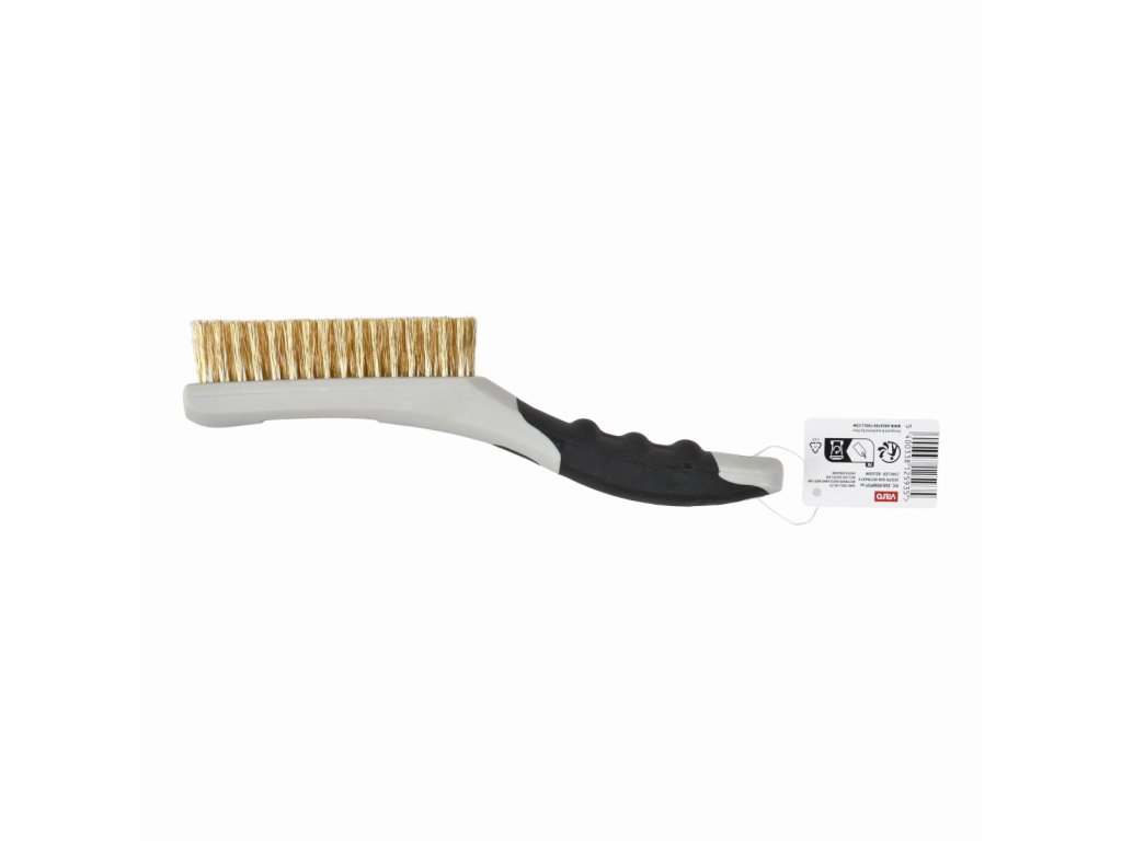 Ruční drátěný mosazný kartáč, plastový. Tento plastový drátěný kartáč KRTH50006 z naší řady Kreator má 66 řad mosazných štětin pro odstranění nečistot a rzi z kovu. Po použití můžete kartáč zavěsit pomocí praktického závěsného očka na rukojeti. Měkká protiskluzová rukojeť zajišťuje pevný úchop a...