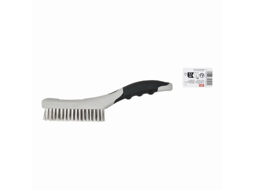 Ruční drátěný nerezový kartáč, plastový. Tento plastový drátěný kartáč KRTH50007 z naší řady Kreator má 66 řad nerezových štětin pro odstranění nečistot a rzi z kovu. Po použití můžete kartáč zavěsit pomocí praktického závěsného očka na rukojeti. Měkká protiskluzová rukojeť zajišťuje pevný úchop...