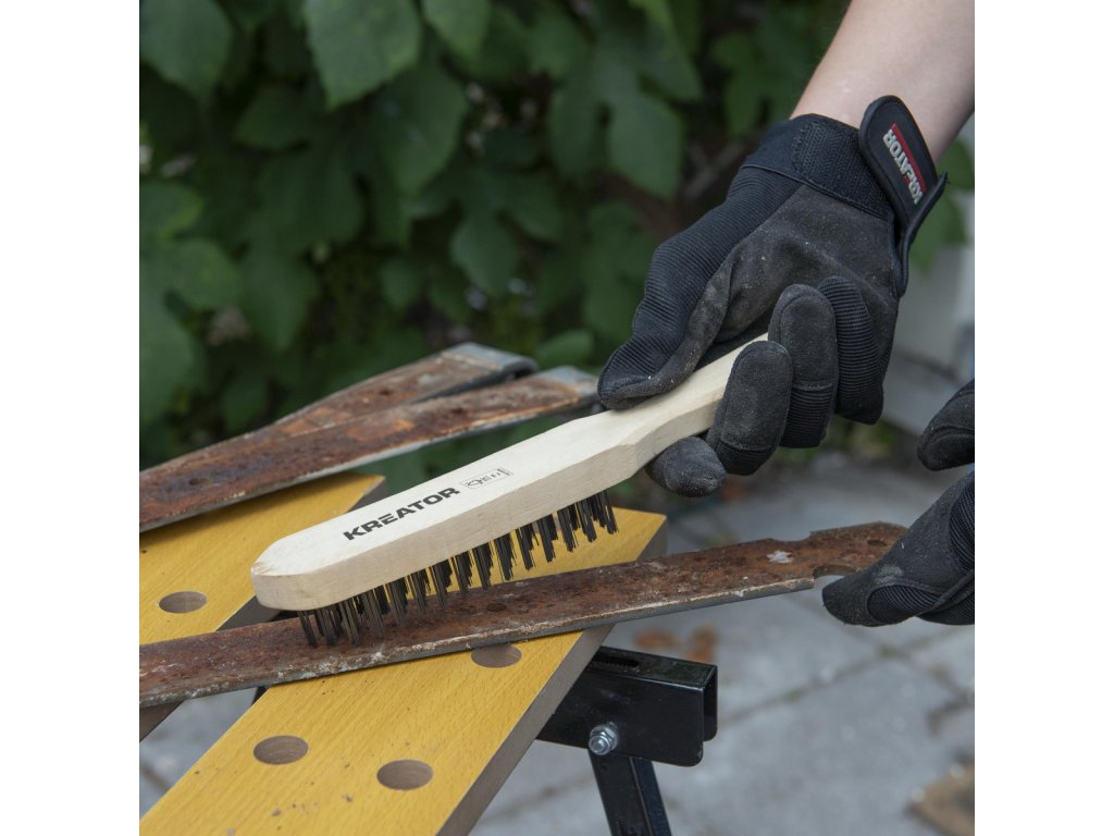 Ruční drátěný ocelový kartáč, dřevěná rukojeť KREATOR KRTH50002