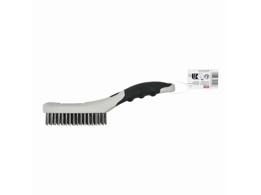 Tento plastový drátěný kartáč KRTH50005 z naší řady Kreator má 66 řad ocelových štětin pro odstranění nečistot a rzi z kovu. Po použití můžete kartáč zavěsit pomocí praktického závěsného očka na rukojeti. Měkká protiskluzová rukojeť zajišťuje pevný úchop a je vyrobena z BI-materiálů plastu.