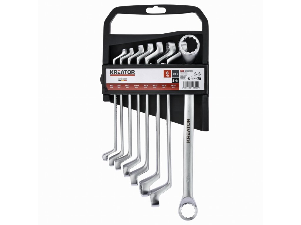 Sada oboustranných očkových klíčů 6-22mm - 8ks. Použijte tuto 12dílnou sadu očkových klíčů KRTH3004 z naší řady Kreator k rychlému utažení nebo povolení jakékoli matice nebo šroubu. Očkový klíč zajišťuje efektivnější přenos vynaložené síly. Protože jsou všechny klíče oboustranné, máte na výběr...