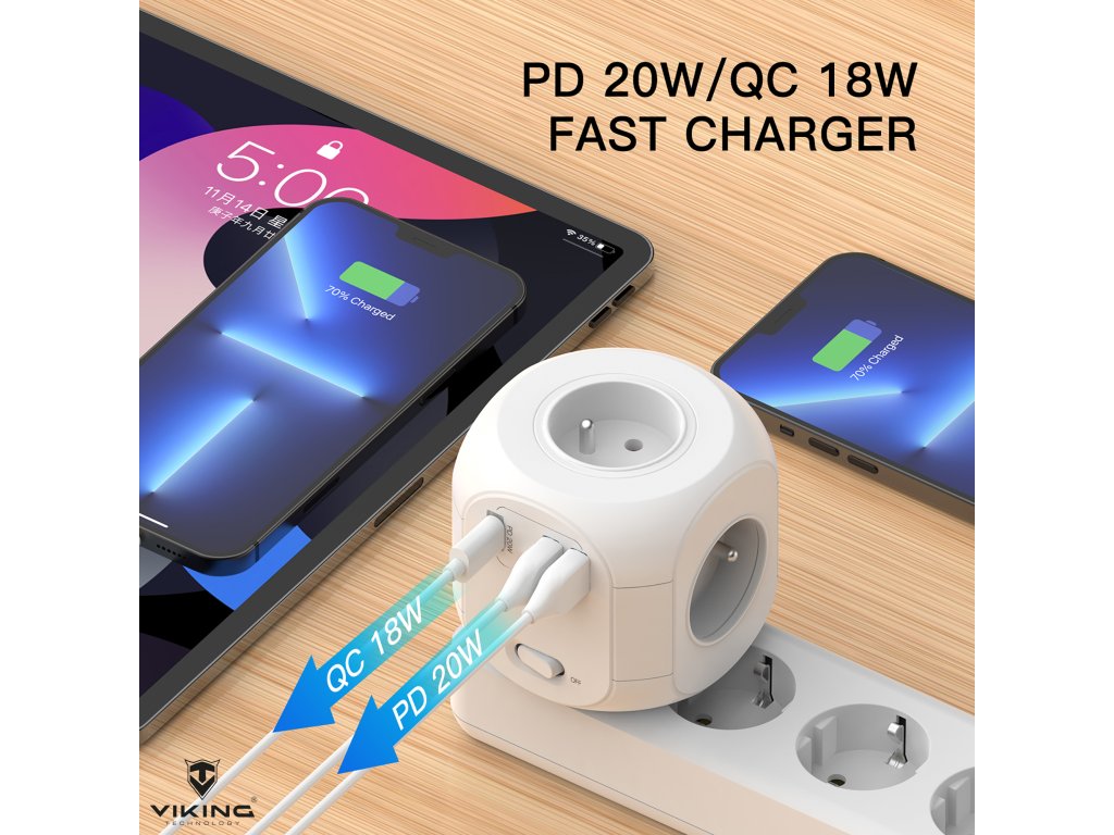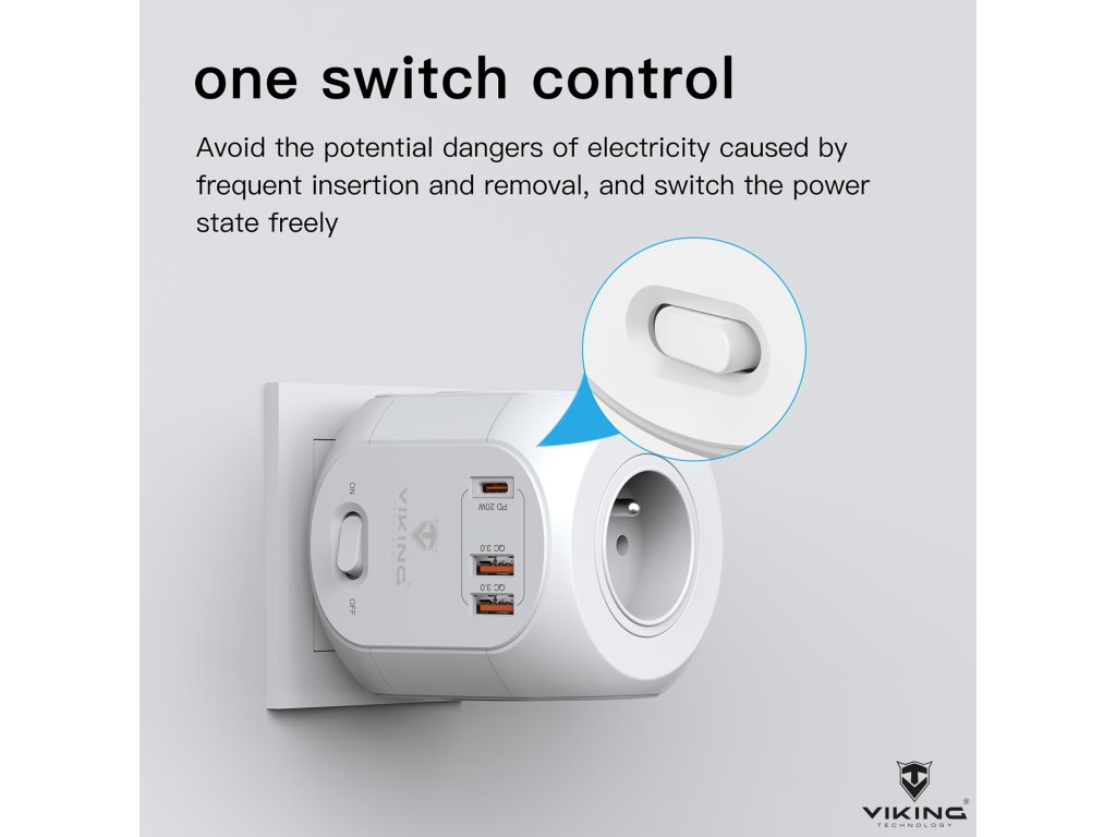 Síťový adaptér Viking AC43 je ideální volbou pro ty, kteří potřebují spolehlivý a praktický způsob napájení více zařízení najednou.