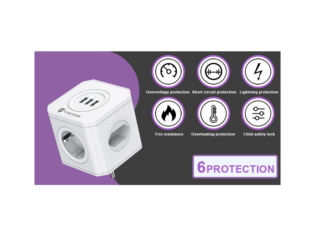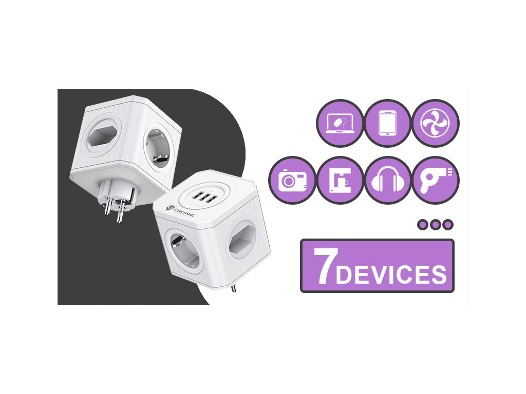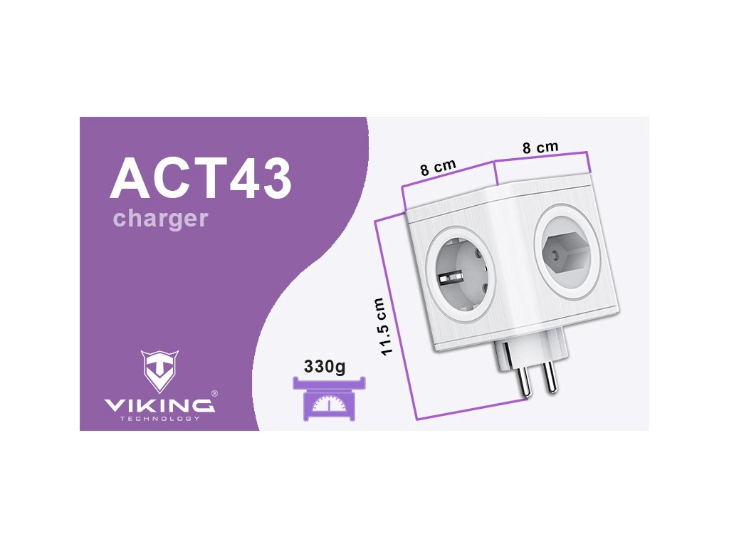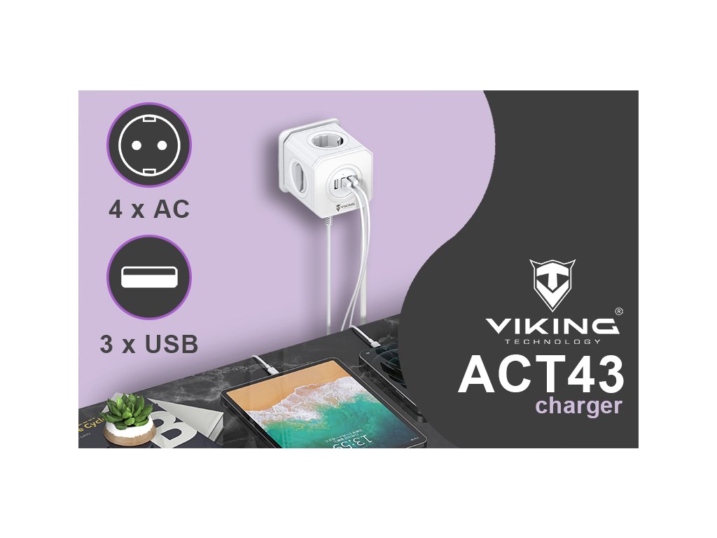 Představujeme Viking ACT43 - revoluční rozbočovací zásuvku, která rozšiřuje standardní zásuvku na další 4 x AC 230V výstupy a 3 x USB-A výstupy. S tímto výkonným zařízením získáte nejen více možností připojení, ale také praktické nabíjecí rozhraní pro Vaše elektronická zařízení.