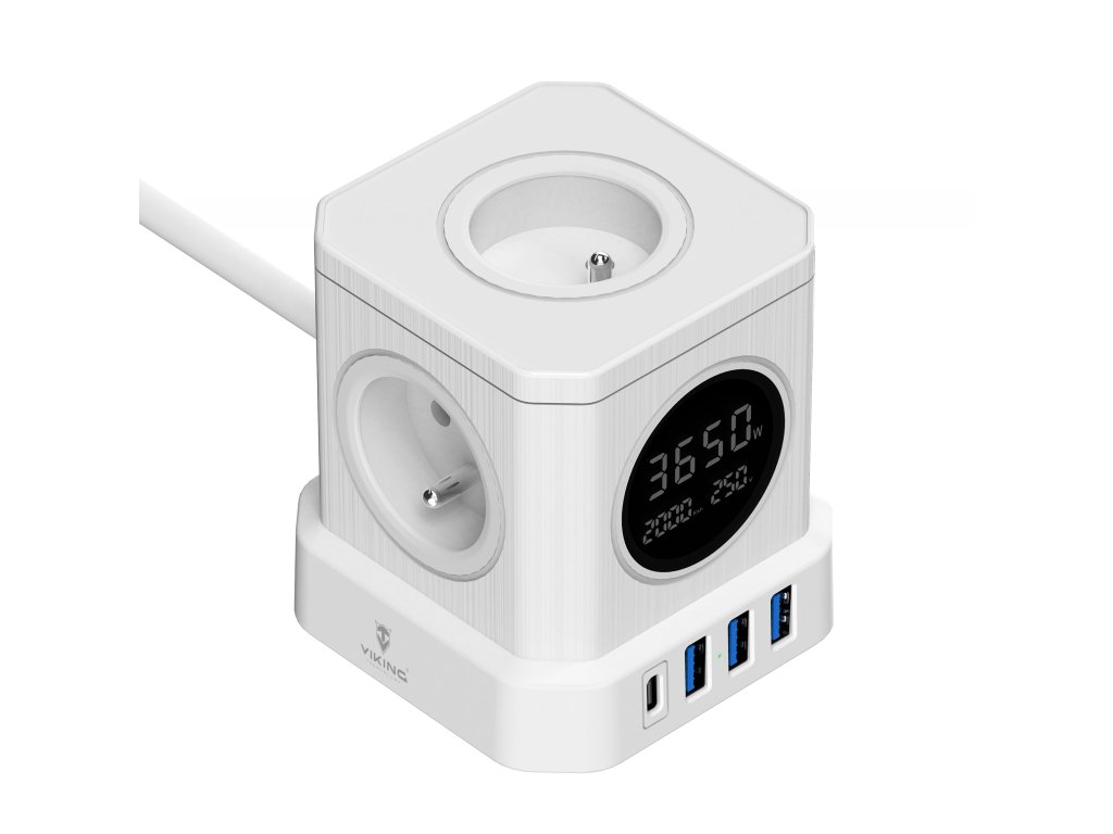 Viking ACT44 spojuje čtyři USB porty (3× USB-A a 1× USB-C), čtyři AC zásuvky a 2metrový prodlužovací kabel do jednoho kompaktního a praktického adaptéru. Umožňuje současně napájet až osm zařízení a zároveň šetří cenné místo na pracovním stole nebo doma.
