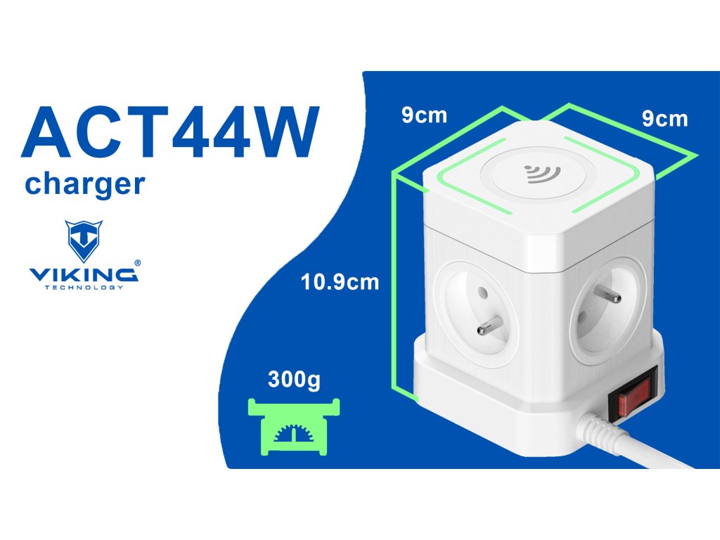 Díky svému kompaktnímu rozměru a modernímu kvádrovému designu se Viking ACT44W stane nezbytným doplňkem vašeho pracovního nebo domácího prostředí. Navíc s vypínačem ON/OFF získáváte plnou kontrolu nad připojením zařízení a šetříte tak elektrickou energii.