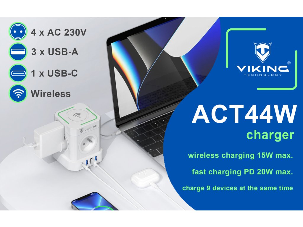 Síťový adaptér Viking ACT44W přináší multifunkční řešení pro vaše elektronická zařízení.