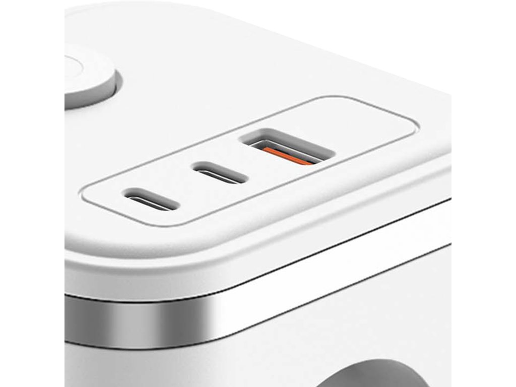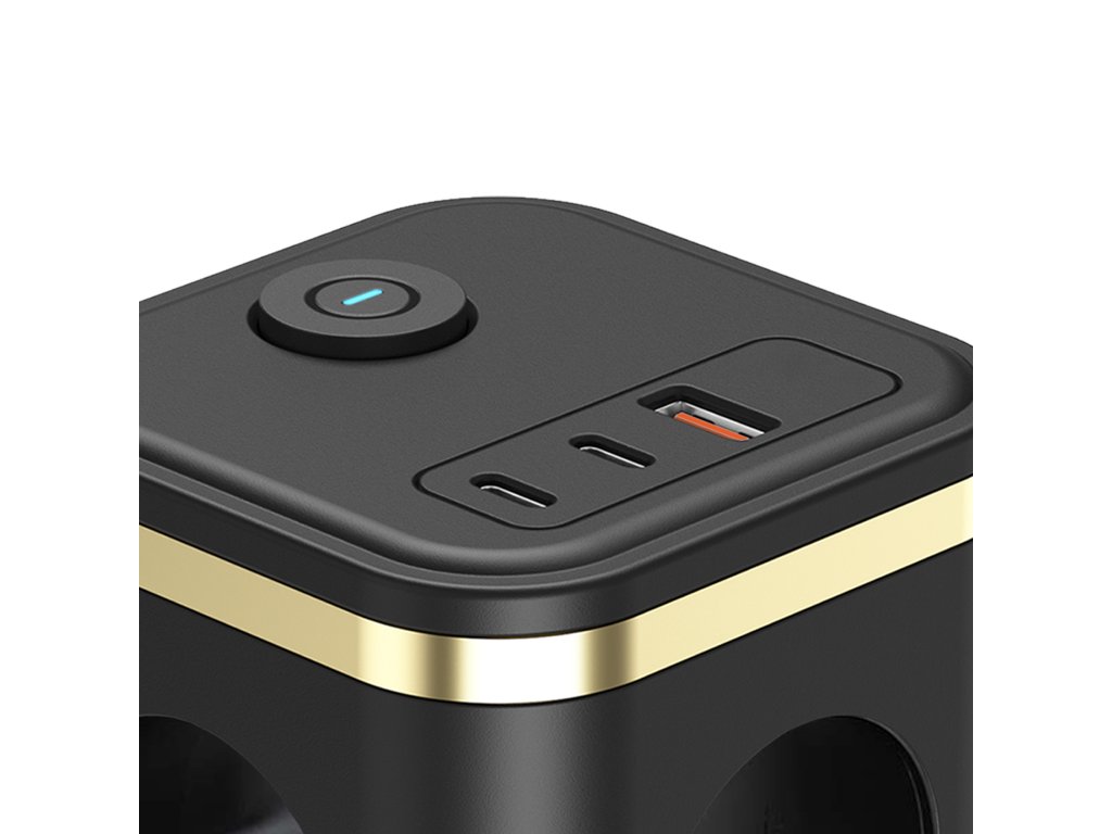 Síťový adaptér • zásuvka • rozbočovač • 3 x AC výstup (230V) • 1 x USB-A výstup 18W (5V 3A, 9V 2A, 12V 1,5A) • 2 x USB-C výstup 20W (5V 3A, 9V 2,22A, 12V 1,67A) • kompaktní rozměry a design • tlačítko ON/OFF • možnost nabíjení až 6 zařízení současně