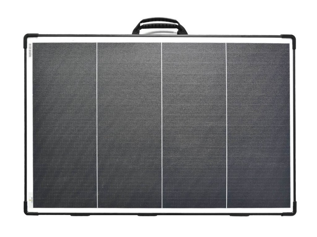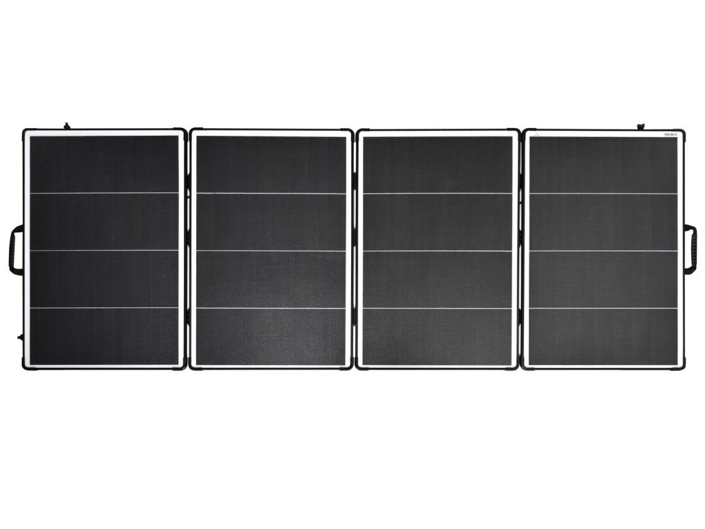 je pevným skládacím panelem s výkonem 400Wp. Součástí je 3 m kabel s MC4 koncovkami.