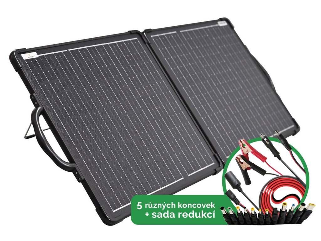 Skládací solární panel Viking LVP80 s výkonem 80W(19,8V/4,04A), je vyroben z monokrystalických solárních článků A-Grade, nejnovější fólie ETFE s laminováním a 23 mm lehkého a tenkého rámu.