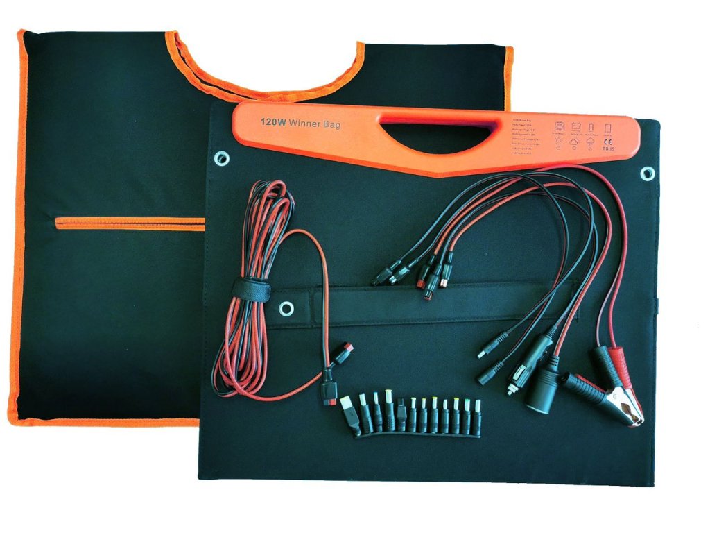 Modul je skládací, lehký a prostorově úsporný, a proto je vhodný pro mnoho použití. Panel lze pomocí integrovaných podpěr postavit pod úhlem 45°, aby byl zajištěn nejlepší možný výkon solárního panelu. Solární panel Viking WB120, dokáže nabíjet vaše zařízení až do napětí 19,8V a 6,06A!