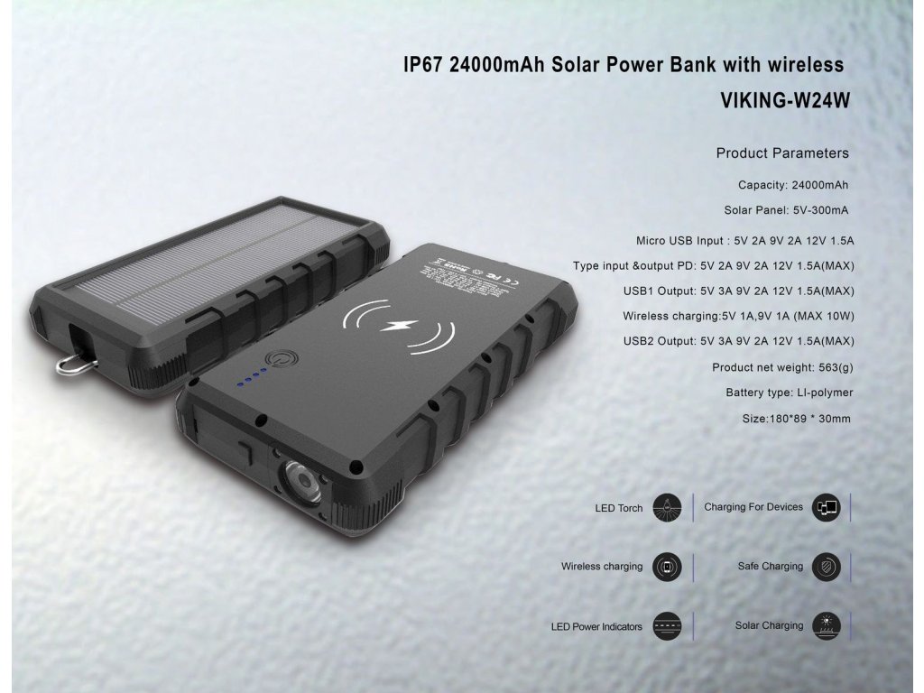| Model: | Solární powerbanka VIKING W24W 24000mAh |