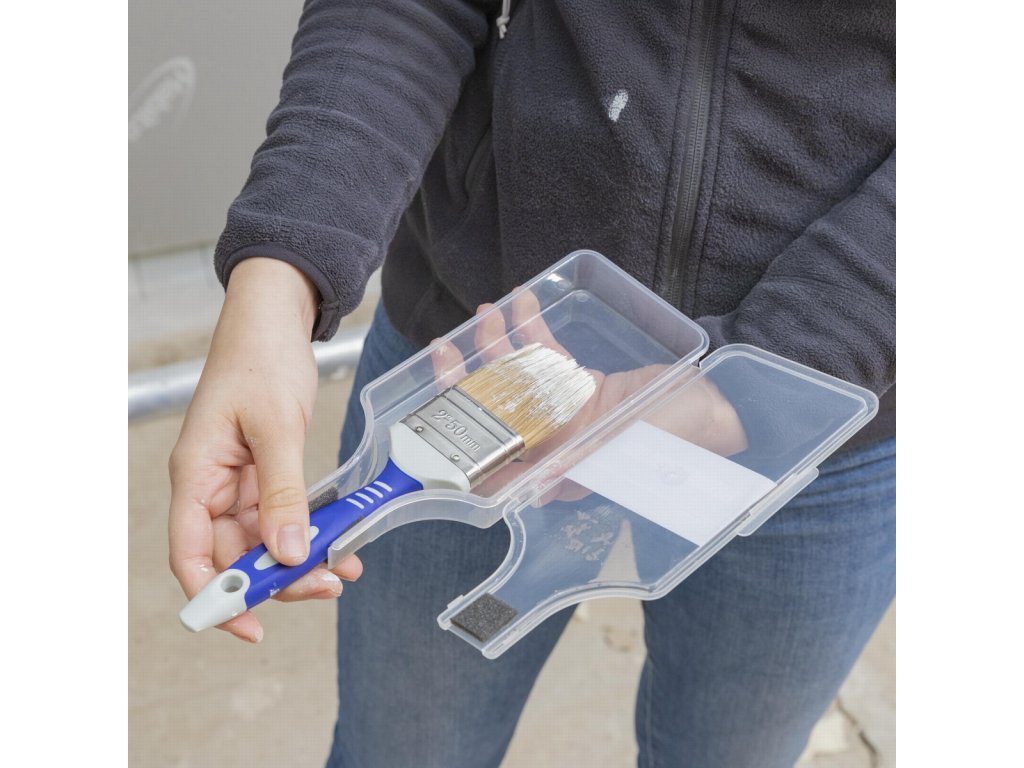 Úložný box na malířské štětce. Úložný box na štětce THEMAP002 od Premion je vhodný pro úschovu všech malířských štětců o maximální pracovní šířce 75 mm a to například během pracovních přestávek. Štětce v obalu vydrží až po dobu 3 dní a nevysychají, můžete se tak k práci kdykoli vrátit. Po...