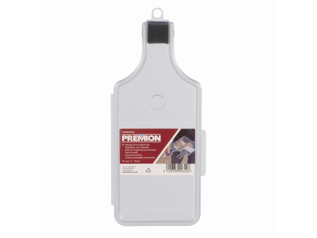 Úložný box na štětce THEMAP002 od Premion je vhodný pro úschovu všech malířských štětců o maximální pracovní šířce 75 mm a to například během pracovních přestávek. Štětce v obalu vydrží až po dobu 3 dní a nevysychají, můžete se tak k práci kdykoli vrátit. Po pečlivém vyčištění štetce je také vhodný pro dlouhodobé uskladnění.