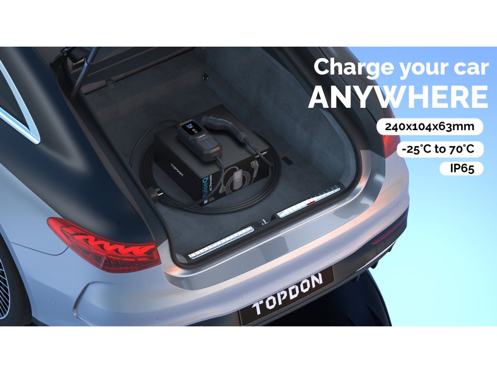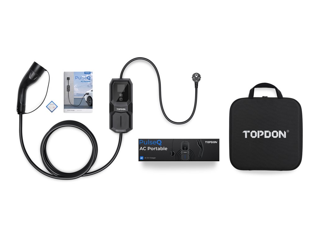 TOPDON PulseQ AC Portable je užitečné řešení pro nabíjení vašeho elektromobilu na cestách! S TOPDON PulseQ AC Portable můžete nabíjet svůj elektromobil kdykoliv a kdekoliv, kde je elektrická zásuvka.
