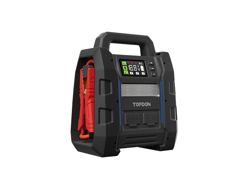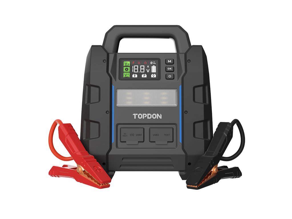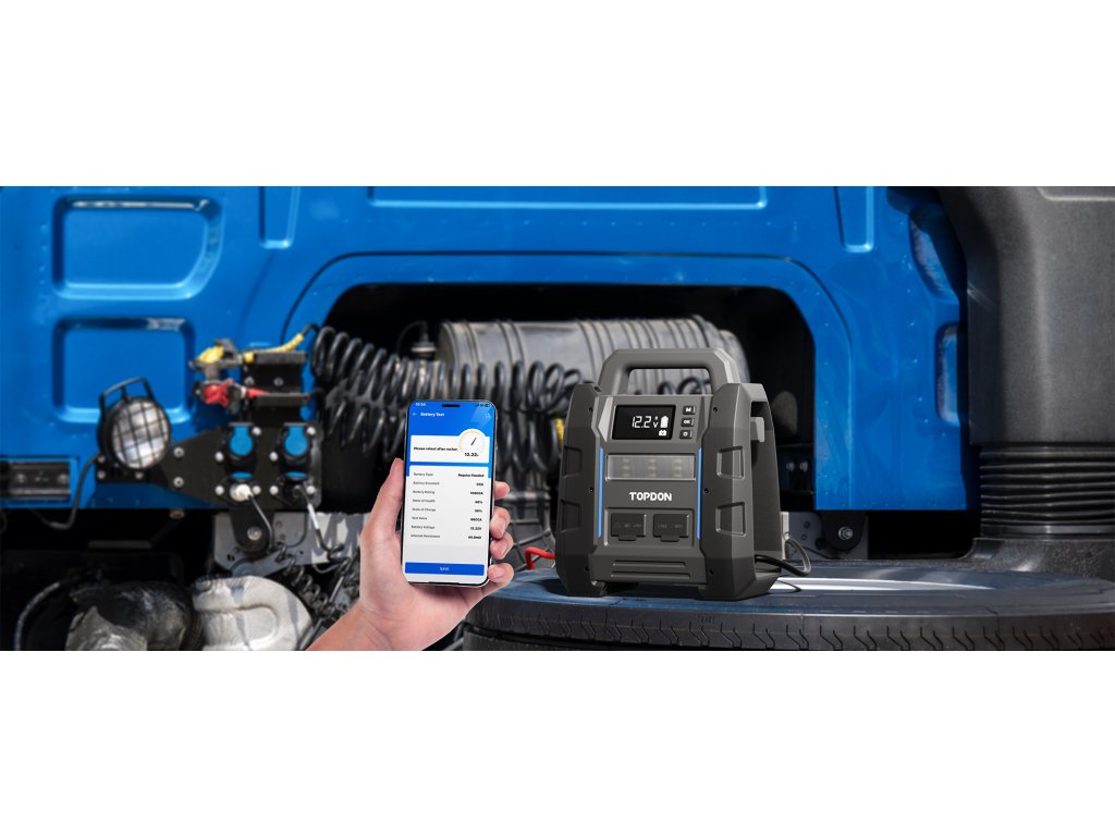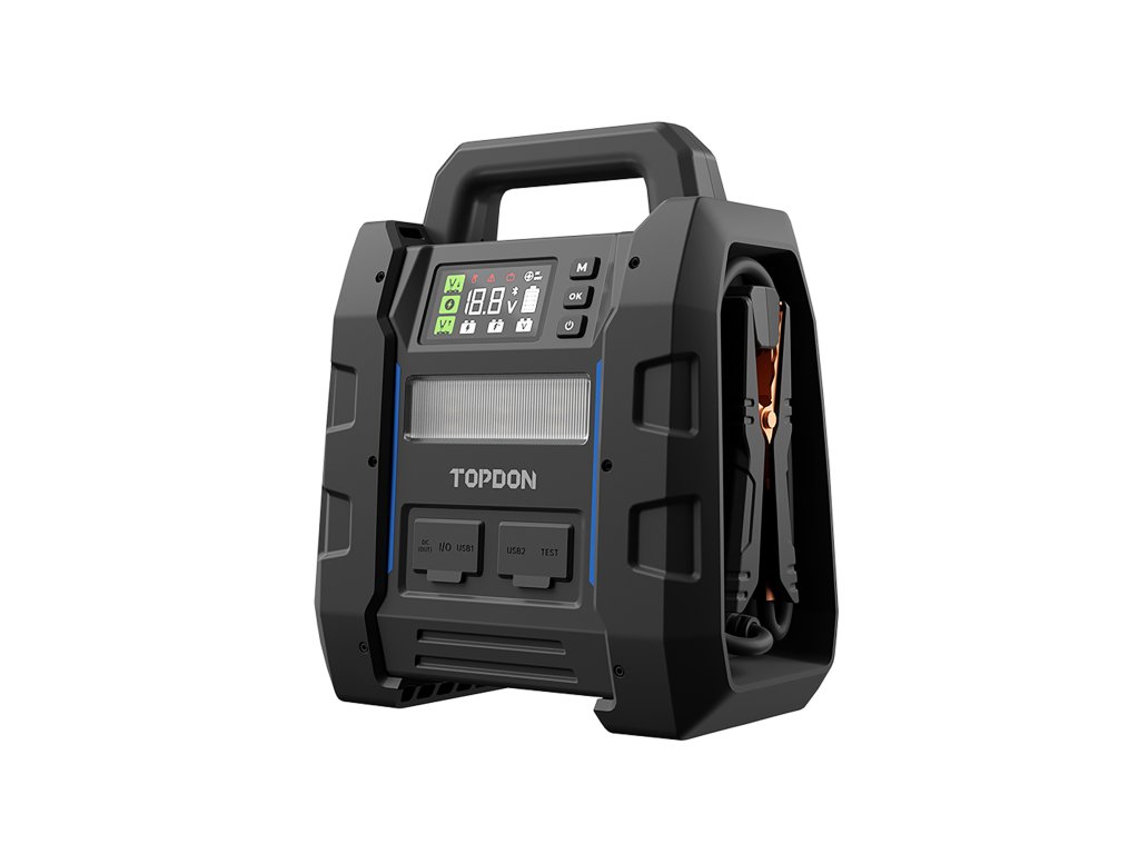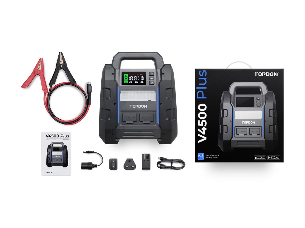 Jump startér V4500 Plus je nabitý funkcemi, jejichž cílem je zlepšit váš zážitek z jízdy. Díky možnosti testovat baterii a sledovat její stav prostřednictvím aplikace (TOPDON BatteryLab) můžete zůstat mobilní a předcházet nečekaným poruchám. Navíc díky svým rychlým nabíjecím schopnostem dokáže dobít váš smartphone za pouhých 25 minut.