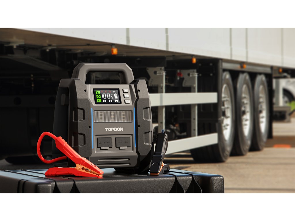 Jump startér TOPDON V4500 Plus nabízí dokonalé řešení napájení pro vozidla s velkým objemem, jako jsou návěsy a přívěsy. Se špičkovým proudem 4500 A je speciálně navržen pro automobily s napětím 12 V a je vhodný pro benzínová a dieselová vozidla s objemem motoru až 16 litrů.