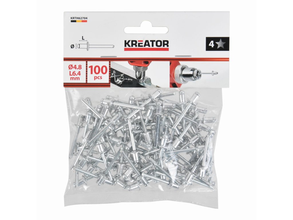 Trhací nýty 4,8x6,4mm 100ks KREATOR KRTH62704