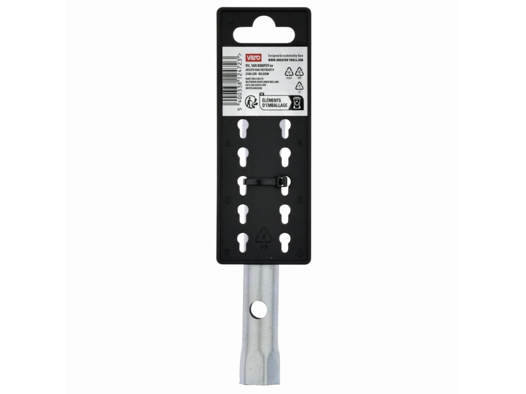 Tento oboustranný trubkový očkový klíč KRTH30603 od Kreator má délku 150 mm a je ideálním nástrojem pro utahování a povolování zapuštěných šroubů a matic, s T-rukojetí nebo bez ní. Jeho tvar umožňuje práci v úzkých prostorech nebo blízko zdí. Klíč má na každé straně dvě různé velikosti: 16 mm a 17 mm.
