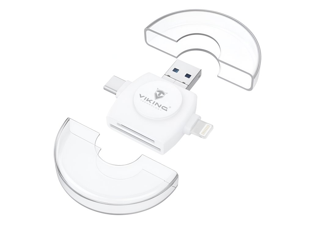 Viking čtečka paměťových karet V4 USB3.0 4v1 je ideálním pomocníkem pro každého, kdo potřebuje rychle a jednoduše přenášet soubory mezi různými zařízeními. Díky čtyřem typům konektorů (Lightning, Micro USB, USB-A 3.0 a USB-C) si skvěle rozumí s mobilními telefony, tablety i počítači. Podporuje OTG, je extrémně kompaktní a navíc ji dostanete v praktickém pouzdře. Ať už potřebujete zálohovat fotky z dovolené nebo přehrát video ve Full HD, tahle čtečka je vždy připravená.